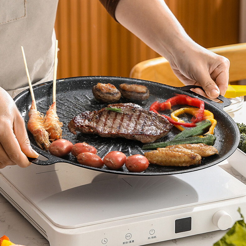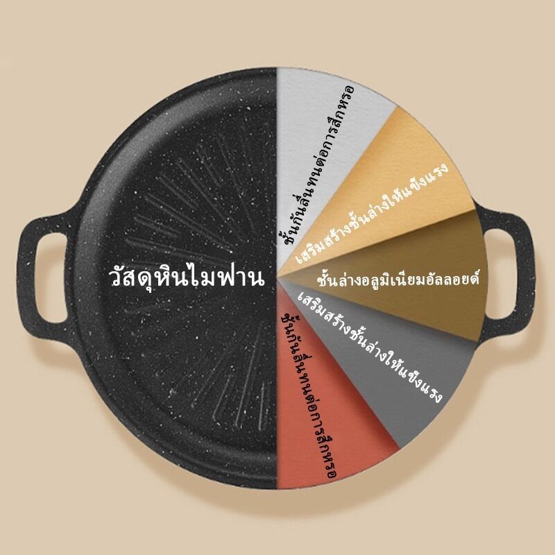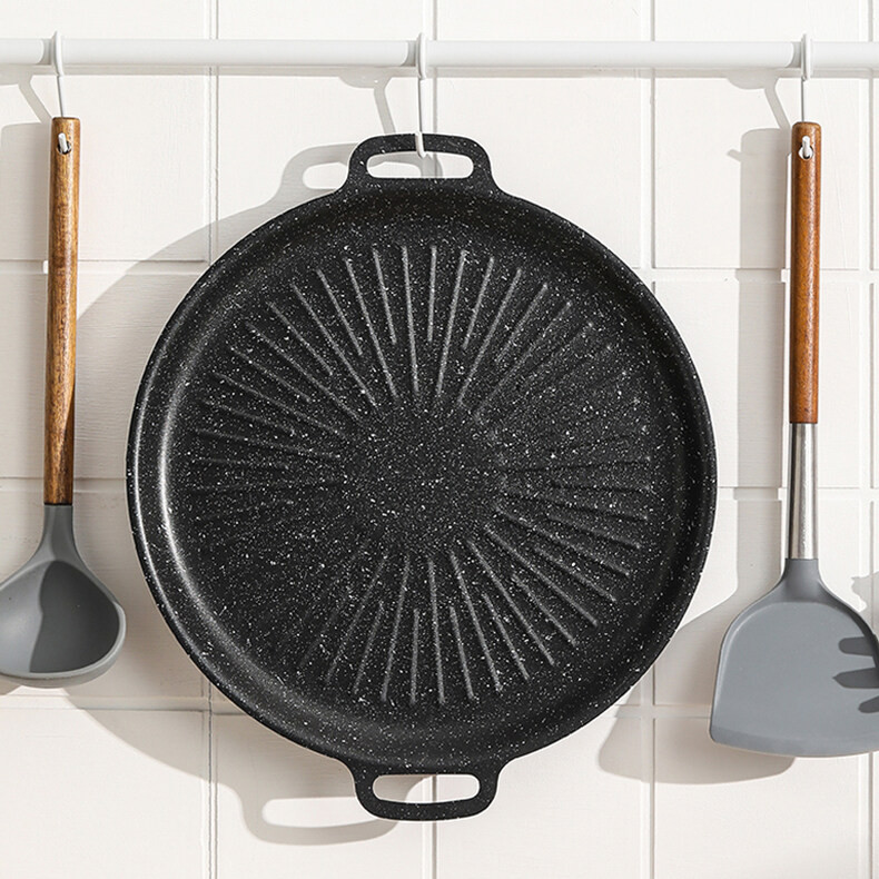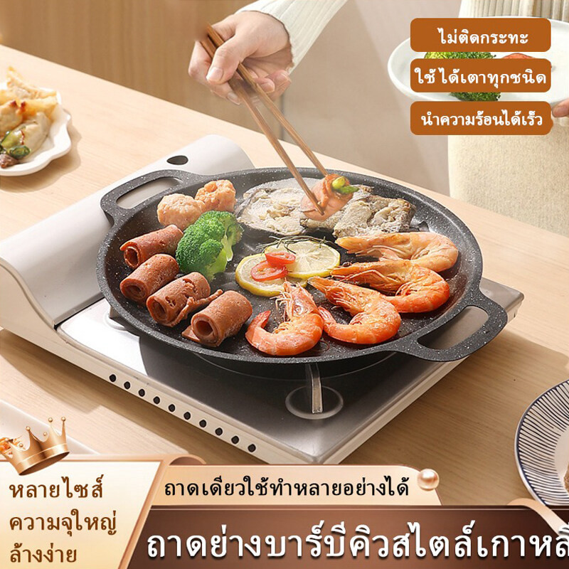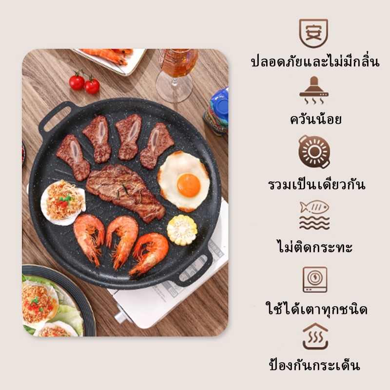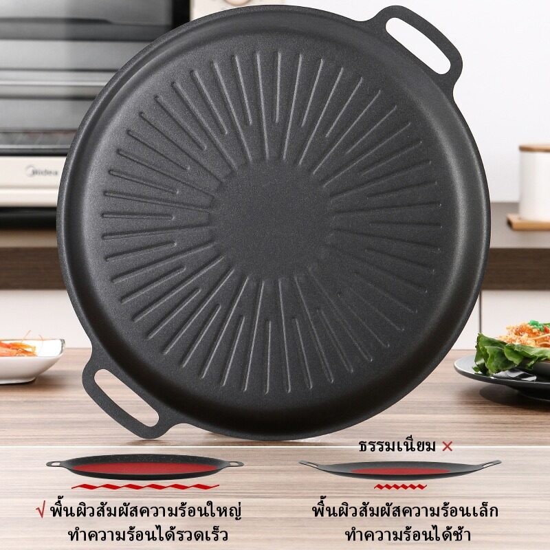 PQS กระทะปิ้งย่างขอบยก ทรงย่างเนย ไม่ติดกระทะ สำหรับเตาแก๊ส เตาถ่านและเตาอื่นๆ พกพาสะดวก ขนาด 30/32/34cm
