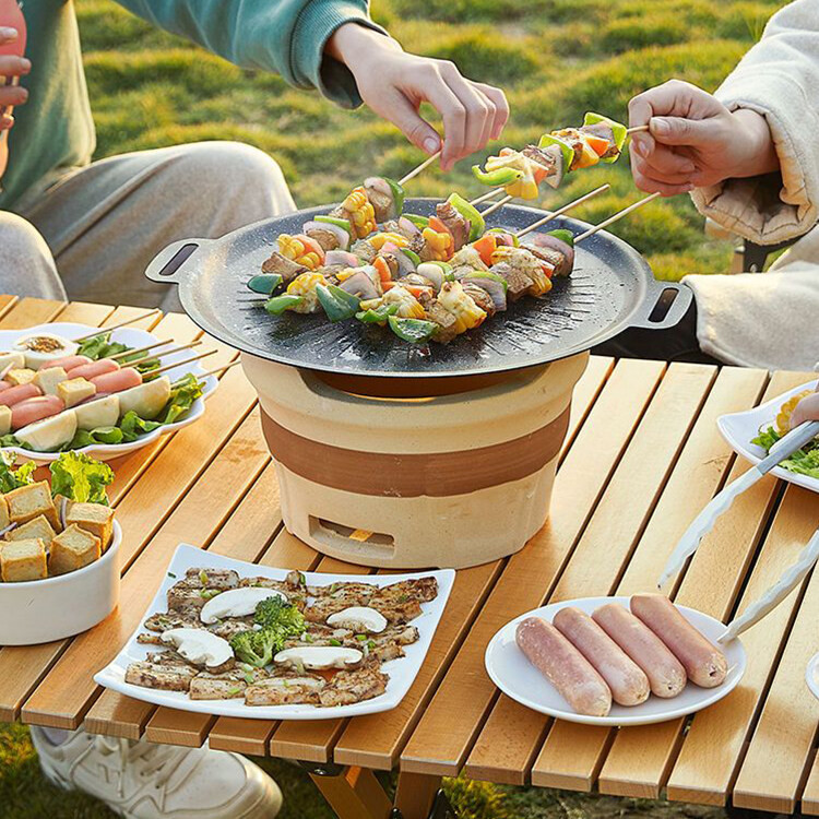 กระทะพกพา มีคุณสมบัติ เป็นกระทะบาร์บิคิวโดยใช้ถ่านไม้ทั่วไป หรือถ่านชารโคล หรือ แอลกอฮอร์ ใช้ปิ้งและย่างกลางแจ้ง เหมาะสำหรับงานปาร์ตี้เล็กๆ หรือการออกไปตั้งแคมป์ปิ้ง