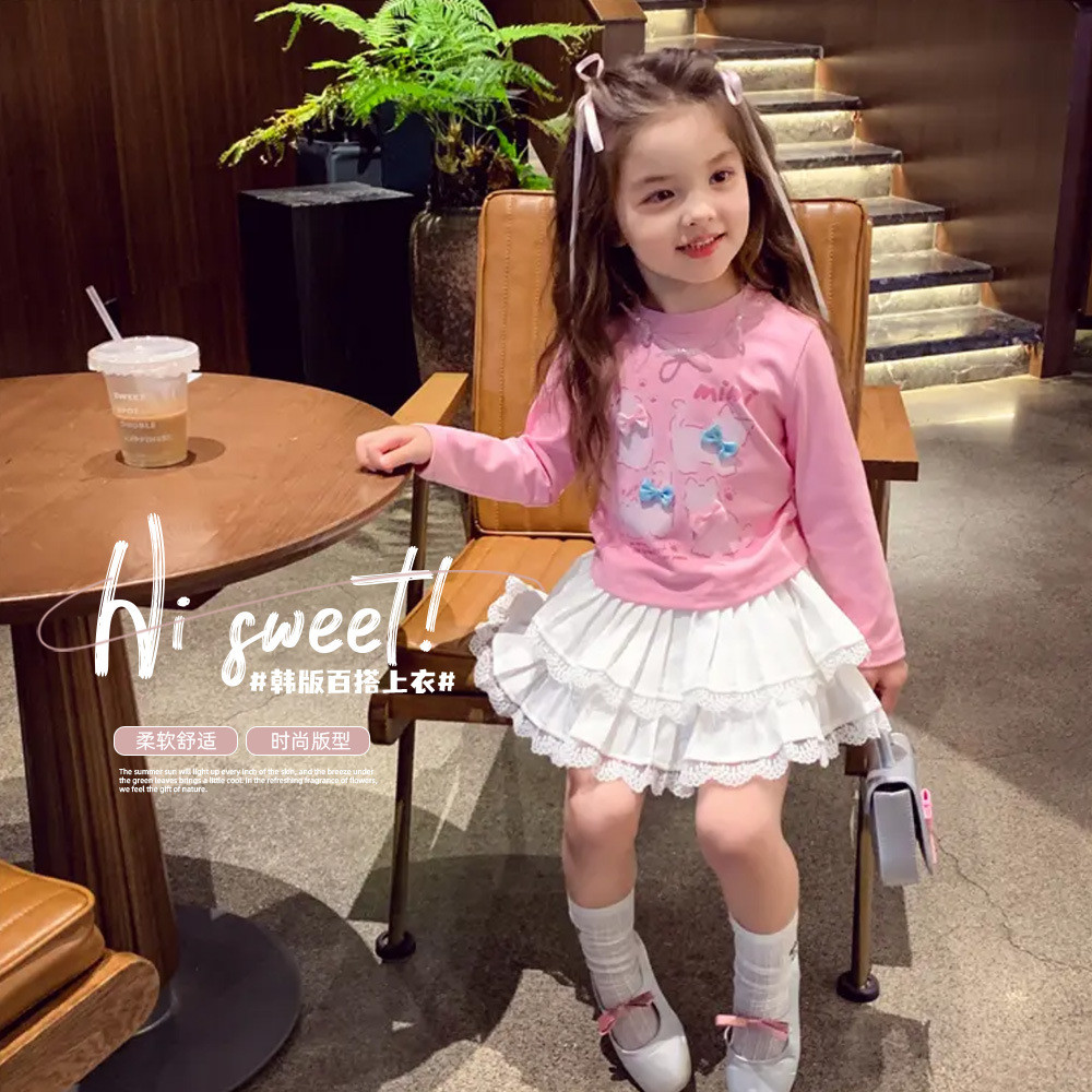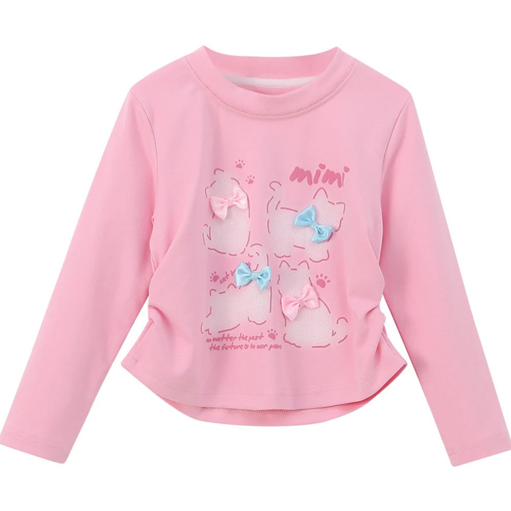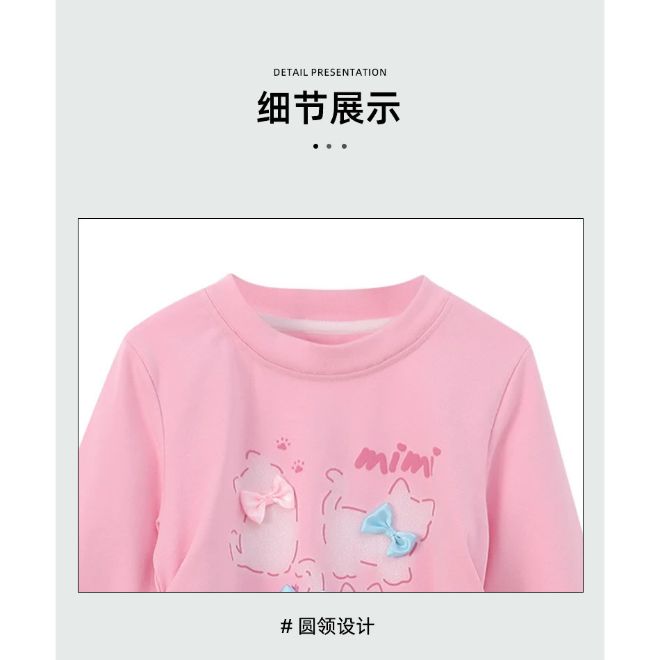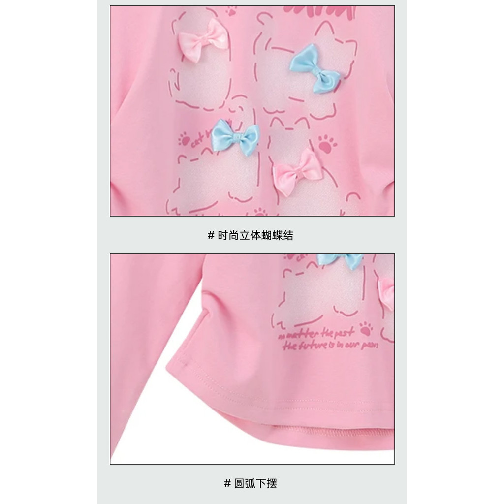 [มล] 80-150ซม สาวฤดูใบไม้ผลิฤดูใบไม้ร่วงแขนยาว จุดต่ําสุด เสื้อเด็กพิมพ์หลวมด้านบนเด็กน่ารักแมวรอบคอสบายๆเสื้อยืด