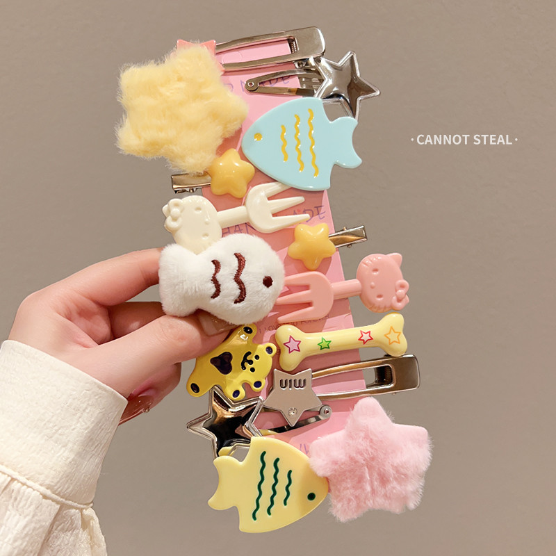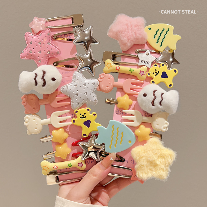 15ชิ้นชุดแฟชั่นเกาหลี น่ารักสร้างสรรค์สนุกเล็กๆน้อยๆปลาส้อมดาวกิ๊บหญิงหน้าผากขอบการ์ตูนอุปกรณ์ผมของขวัญ