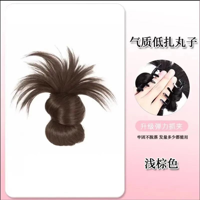 เดี่ยวเกาหลีขี้เกียจอารมณ์ต่ําซาลาเปาขนไก่ทรงผมวิกผมจําลองผสมทุกวันคว้าคลิปเครื่องประดับผมผู้หญิง