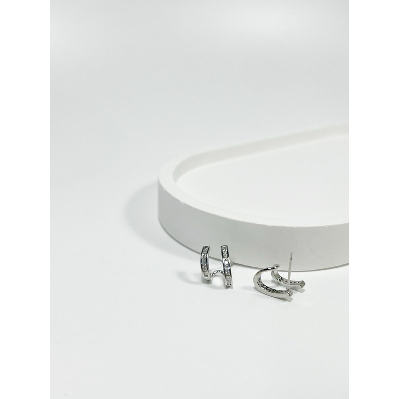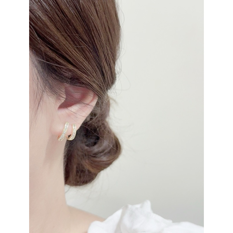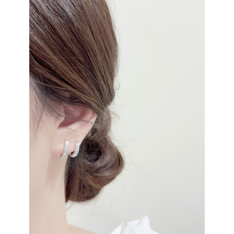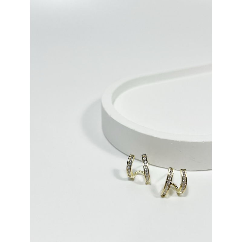 ต่างหูคริสตัล Cz ดีไซน์ 2 แถวไล่ระดับกันใส่ออกมาแล้วเหมือนเกี่ยวหูไว้ ฟินนิชลุคสุดเก๋ใส่ได้กับทุกชุดทุกสไตล์