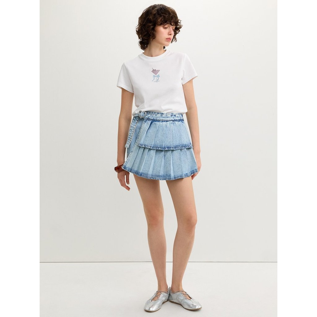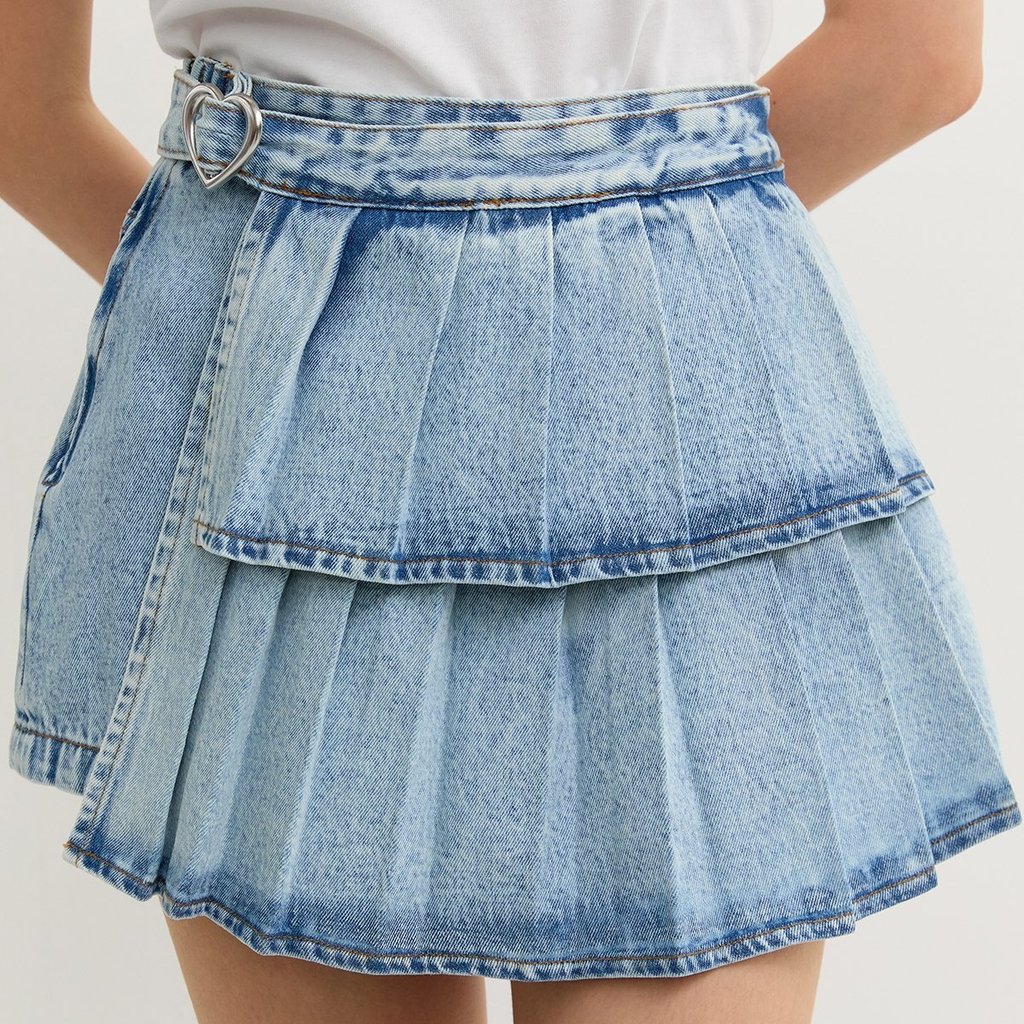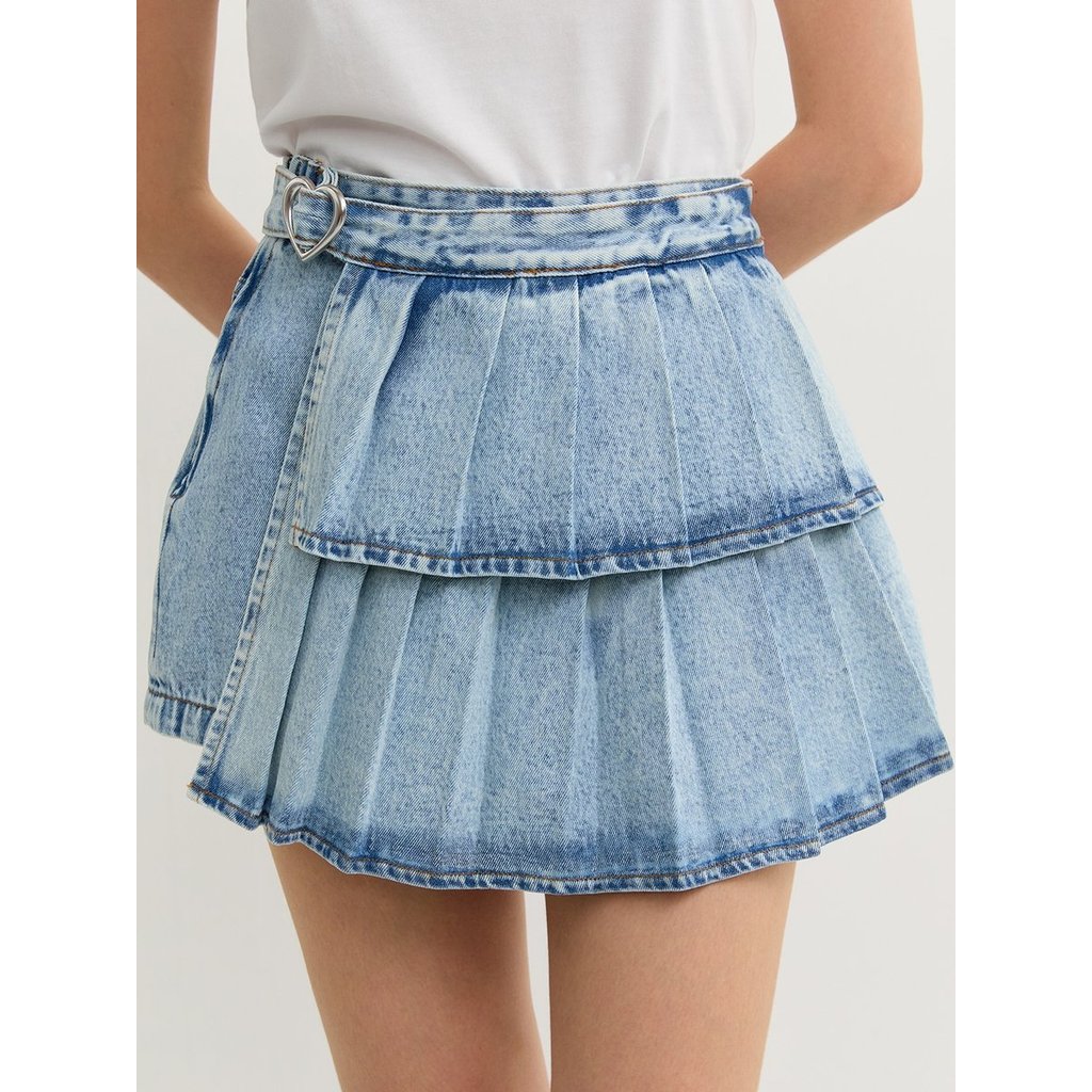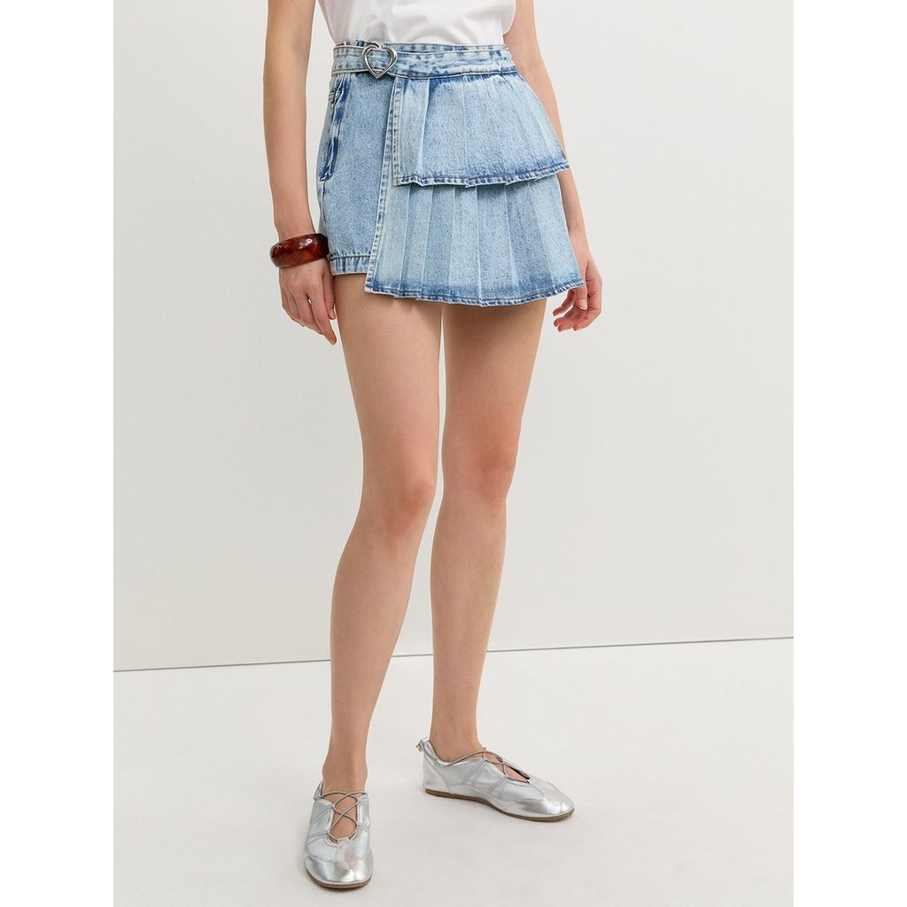 [Pomelo] กางเกงกระโปรงยีนส์จับจีบ / Pleated Denim Skort