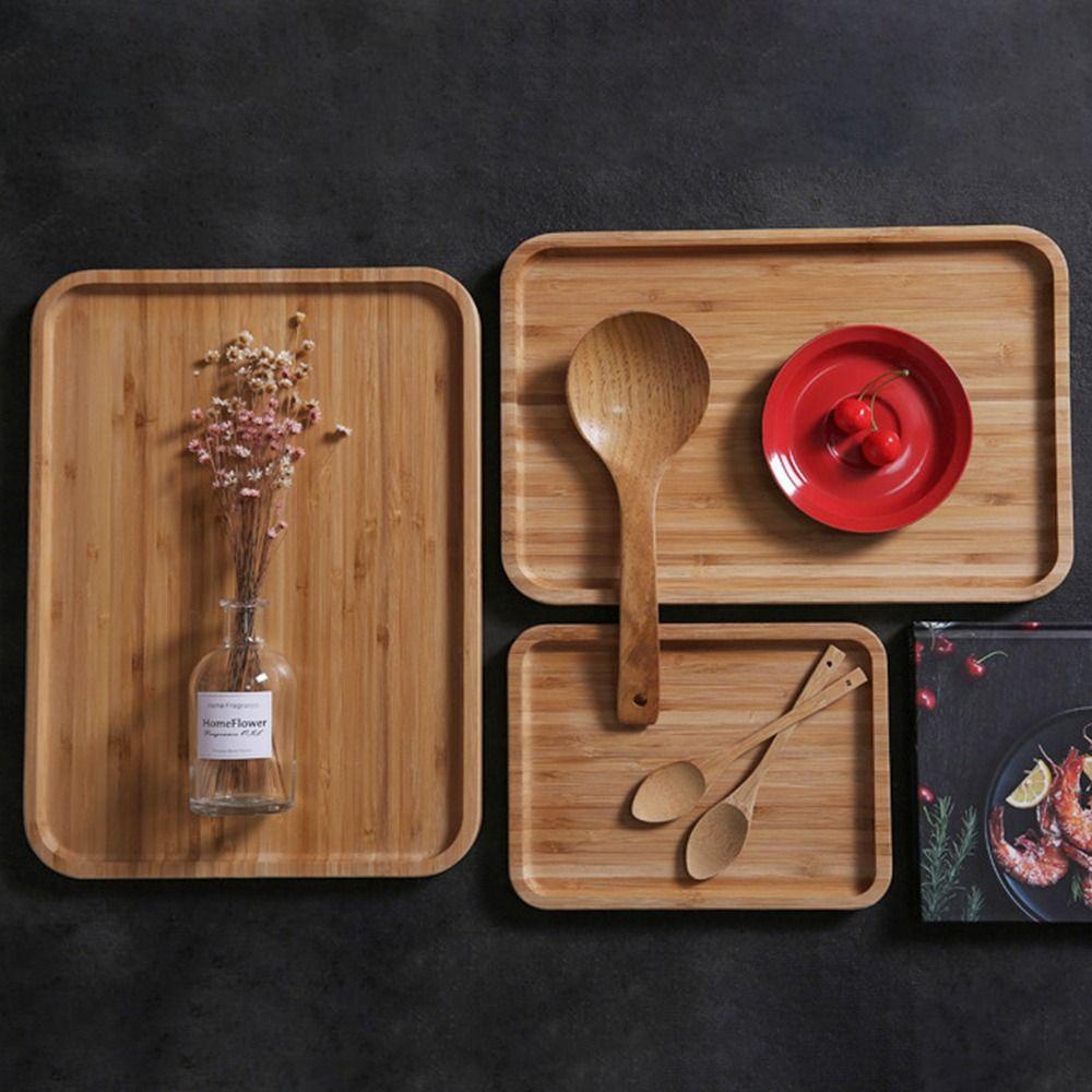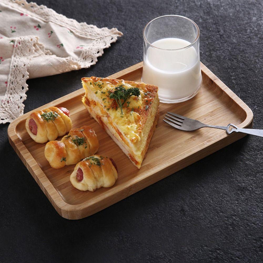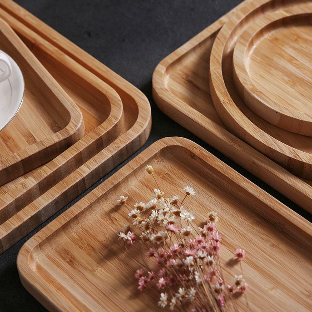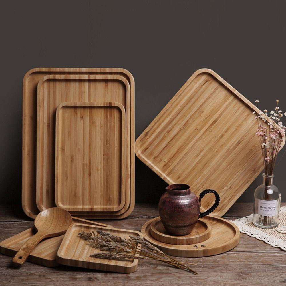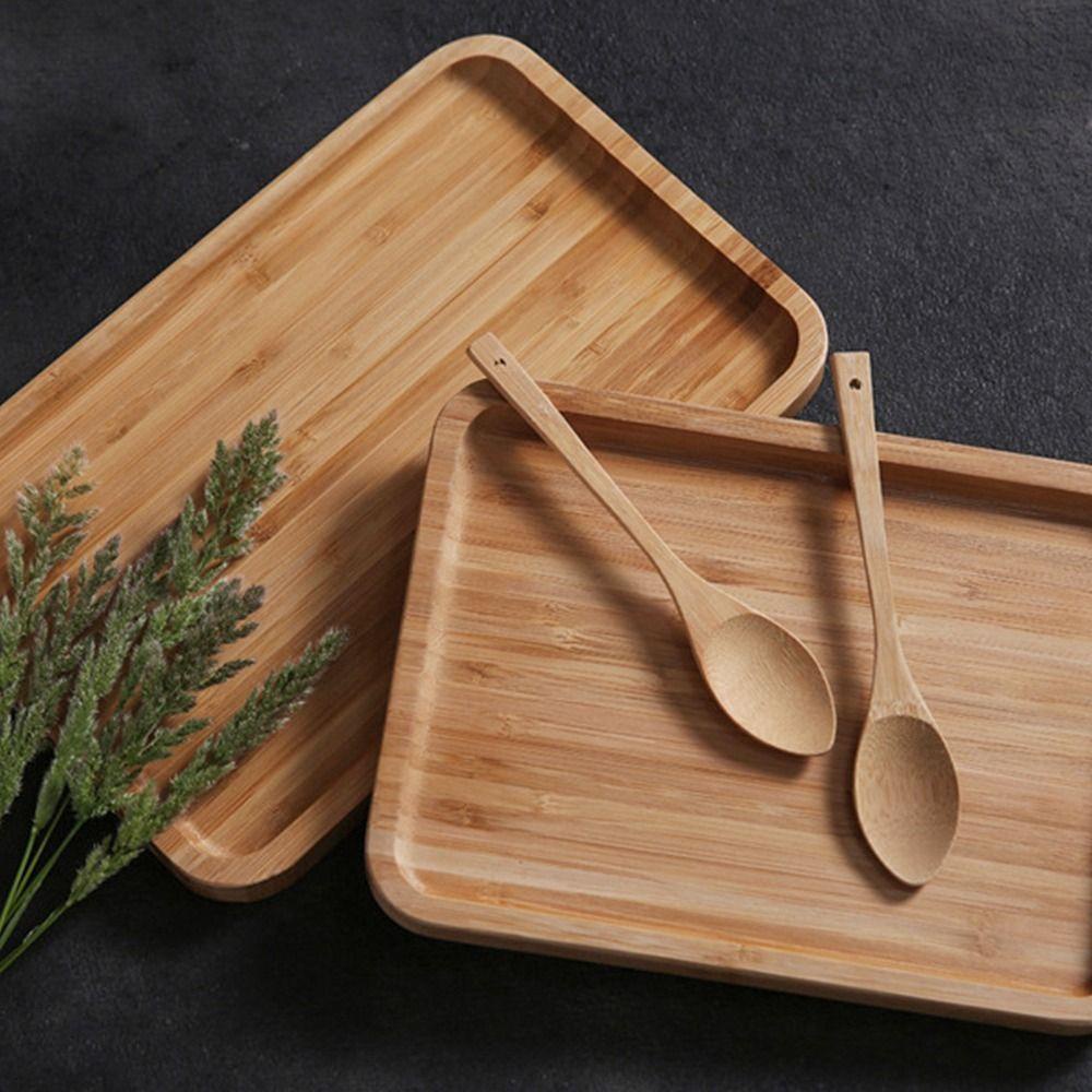 โจวหลิงโฮ 1ชิ้นถาดไม้ไผ่,ของใช้ในครัวเรือนสี่เหลี่ยมรอบจานอาหารค่ํา,ทนทานตารางบ้านครัวสีทึบผลไม้จานขนมสําหรับถือชาผลไม้บาร์บีคิวขนมปัง