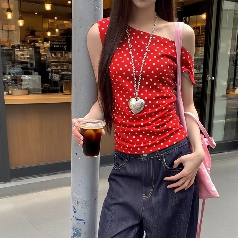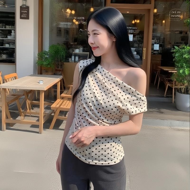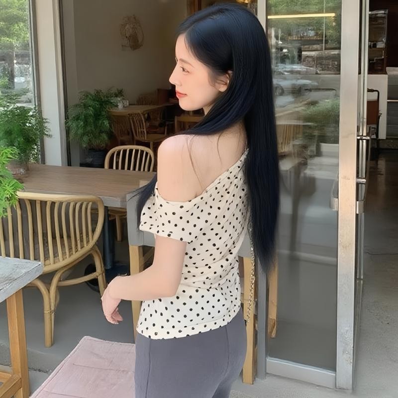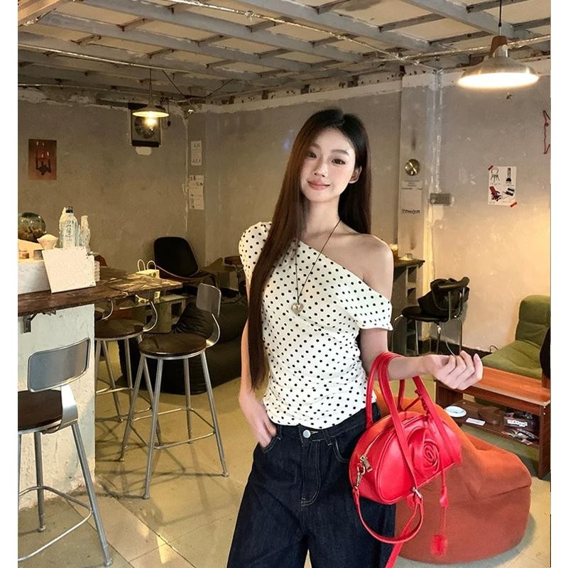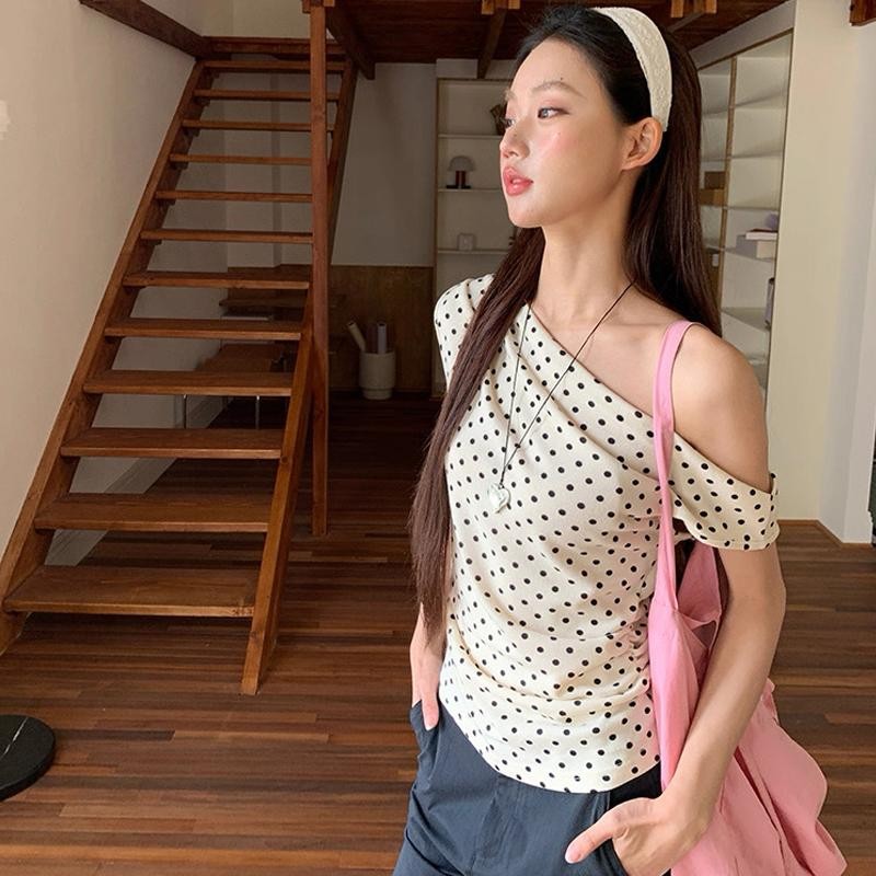 BIMI เสื้อยืดแขนสั้นผู้หญิงฤดูร้อน 2025 ใหม่ระเบิดจุดปิดไหล่ด้านบนแฟชั่นเซ็กซี่