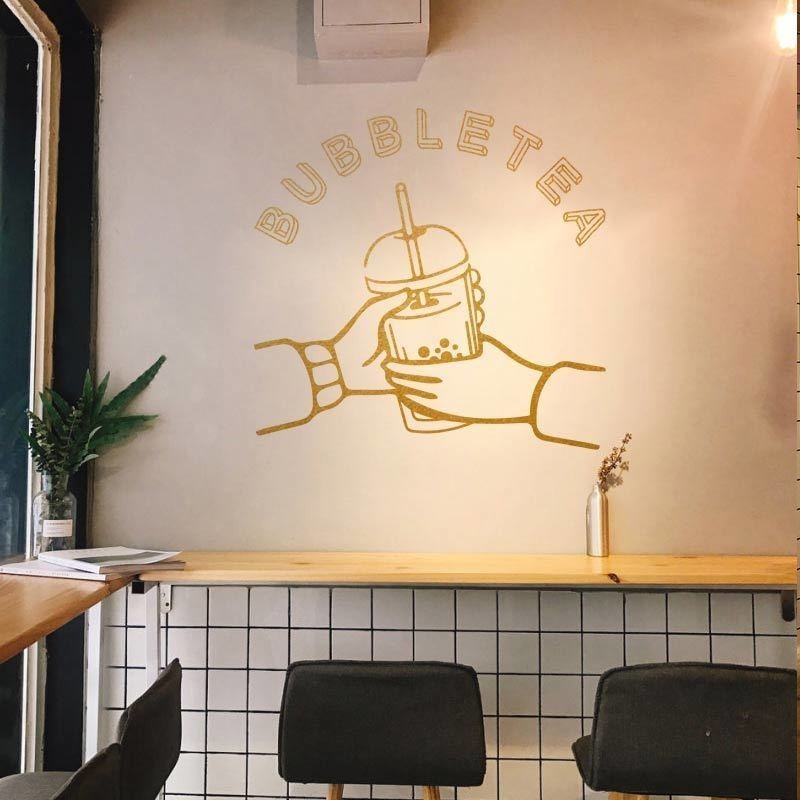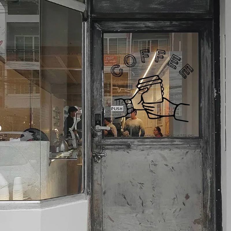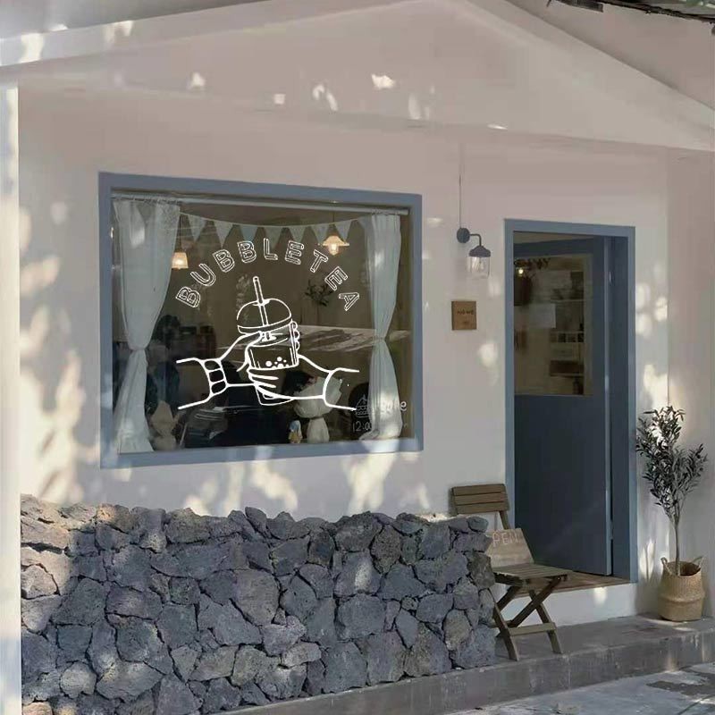 มือถือรูปแบบสายกาแฟสติกเกอร์กลวงร้านชานมร้านเครื่องดื่มตกแต่งกระจกหน้าต่างสติกเกอร์ประตู