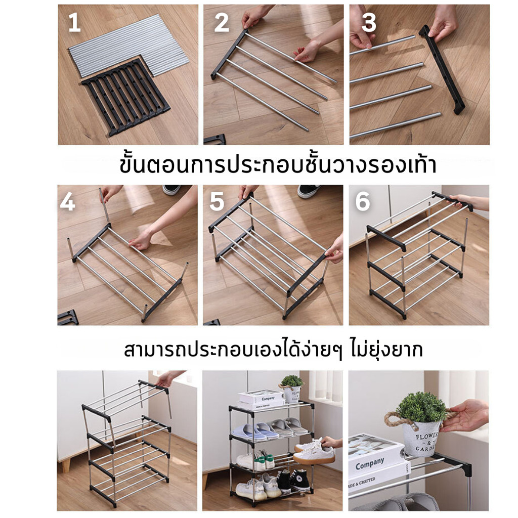 ?ชั้นวางรองเท้าสแตนเลส ที่วางรองเท้า 4 ชั้น ประกอบง่าย สามารถวางรองเท้าได้ประมาณ 6-12 คู่?