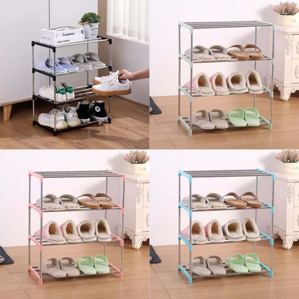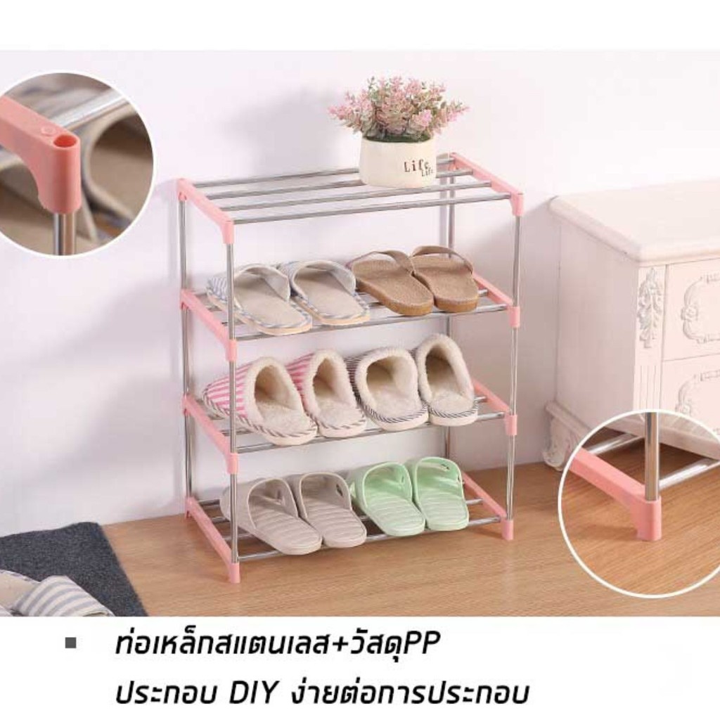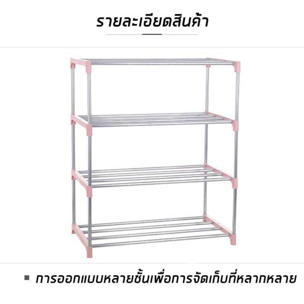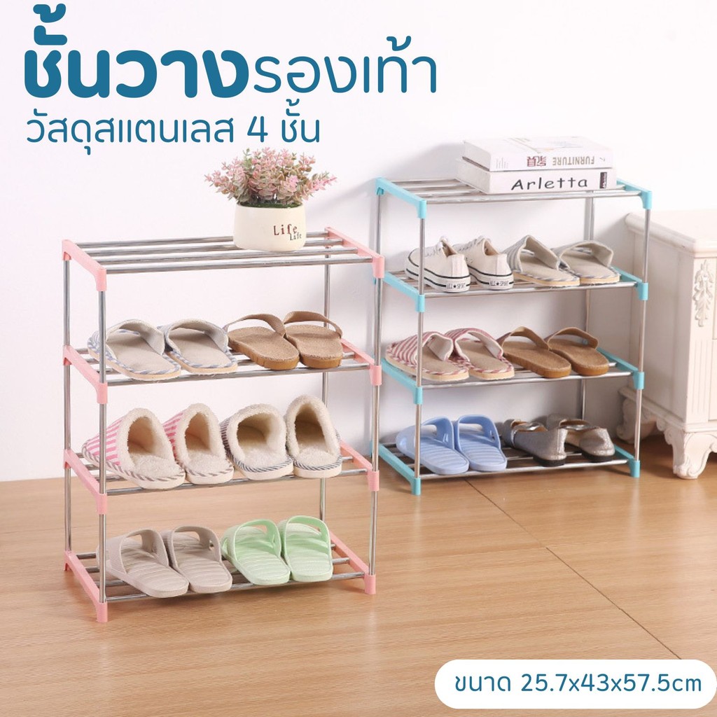 ชั้นวางรองเท้าอเนกประสงค์ วัสดุสแตนเลส 4 ชั้น แบบไม่มีลายเสาข้างตรง ประกอบง่าย โครงสร้างแข็งแรง มี 5 สี