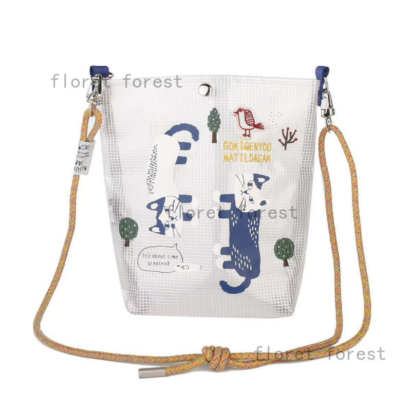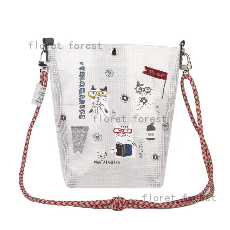 【แบรนด์ญี่ปุ่น】Kusuguru สินค้าจริง แมวปักลาย กระเป๋าสะพายเฉียง พลาสติกใส สำหรับใช้งานประจำวันหรือช้อปปิ้ง