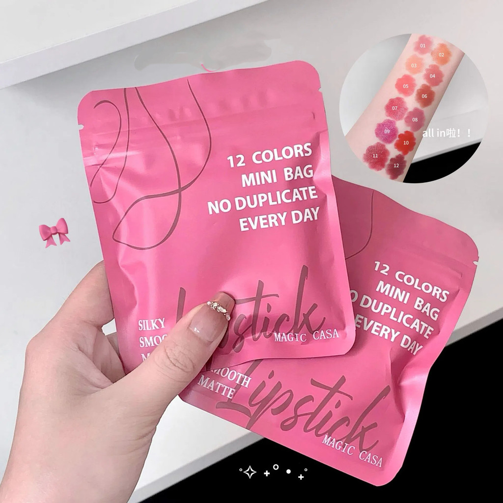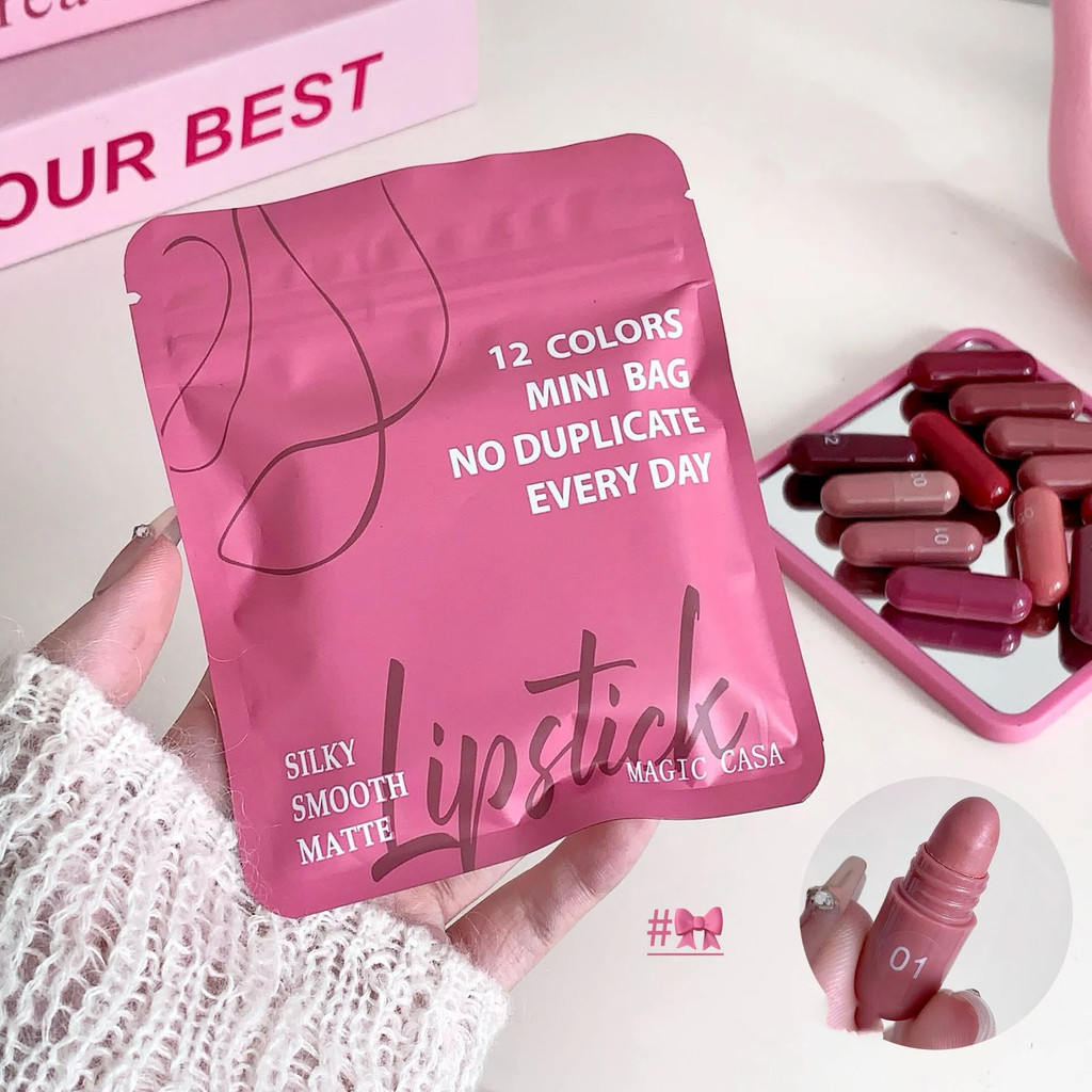 MAGIC CASA 12 สีแคปซูลลิปสติกชุดธรรมชาติยาวนาน Non-stick Cup Mini Matte