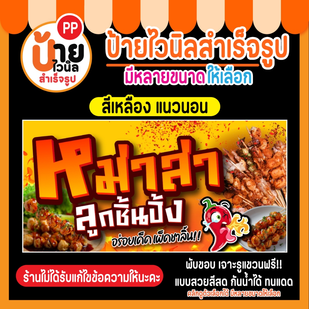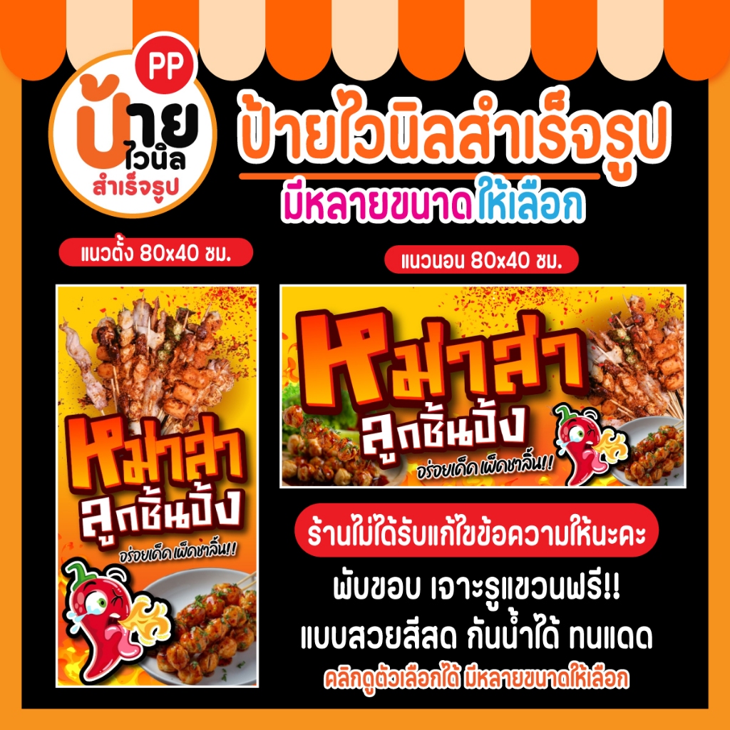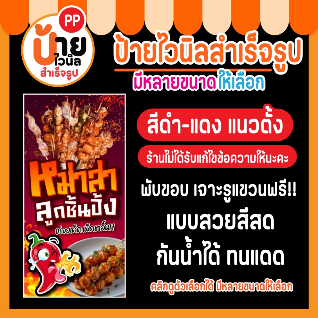 ป้ายไวนิล หม่าล่า ลูกชิ้นปิ้ง ผ้าหนา กันน้ำได้ สีสดคมชัด พร้อมใช้งาน 28A1