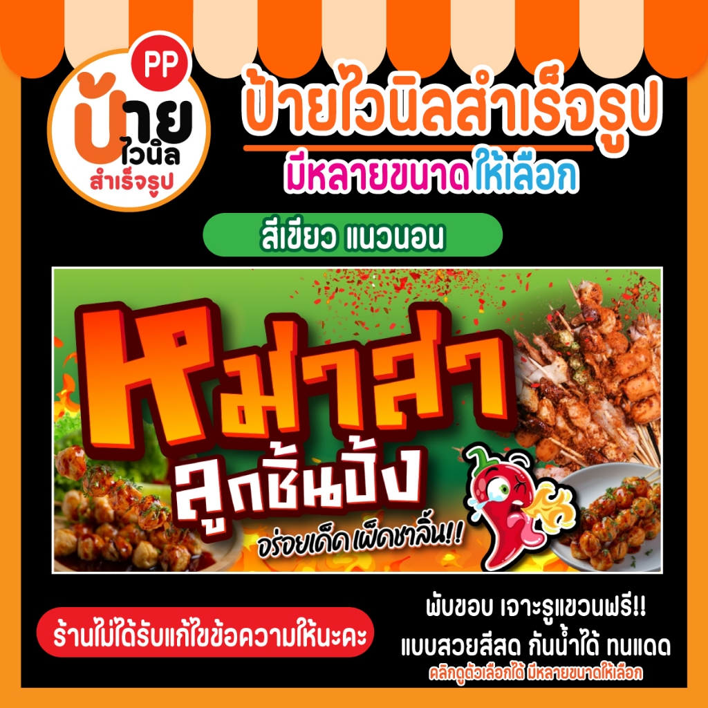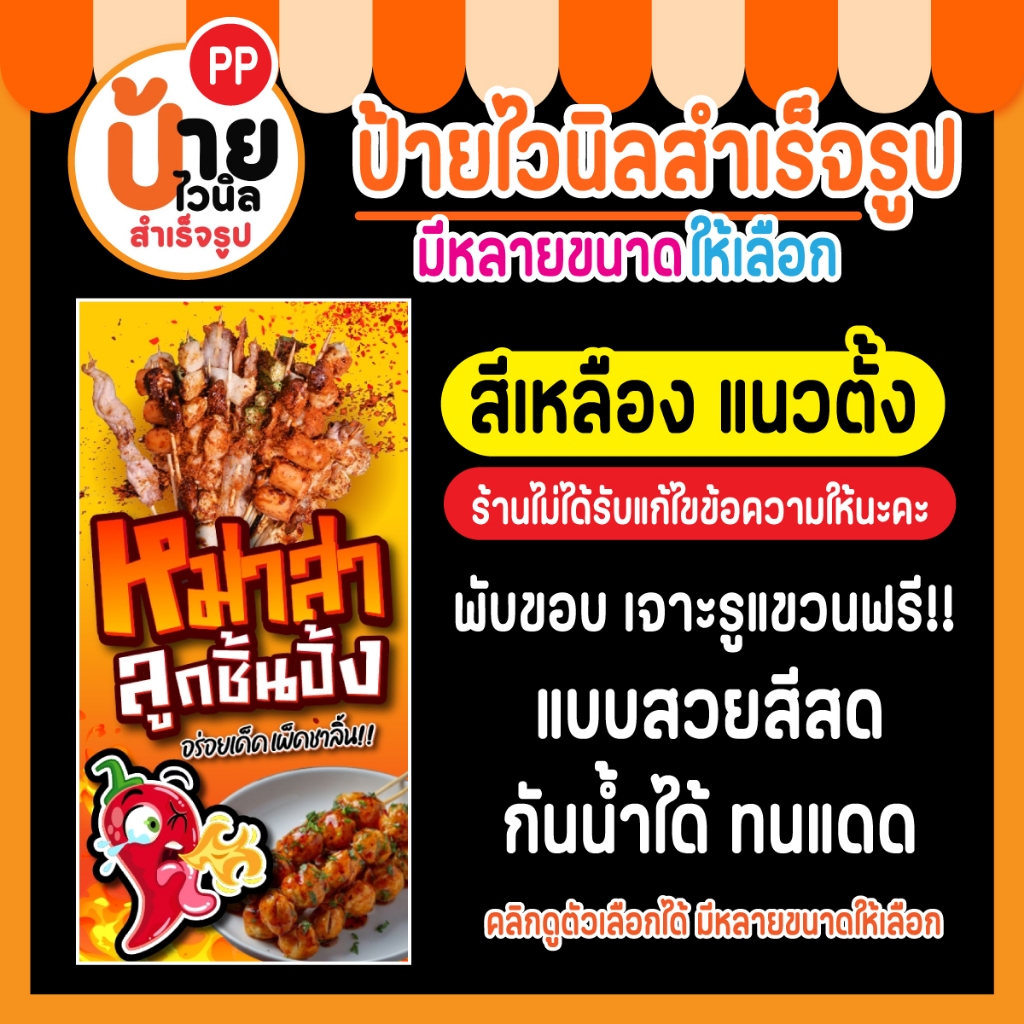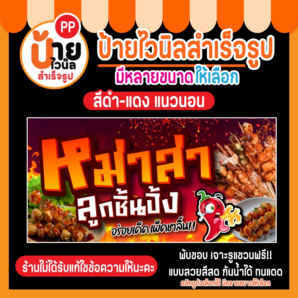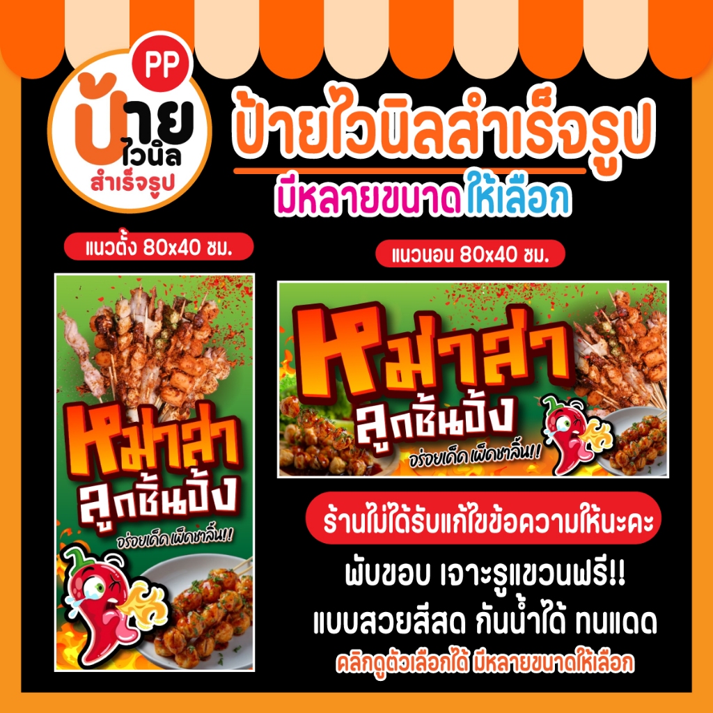 ป้ายไวนิล หม่าล่า ลูกชิ้นปิ้ง ผ้าหนา กันน้ำได้ สีสดคมชัด พร้อมใช้งาน 28A1