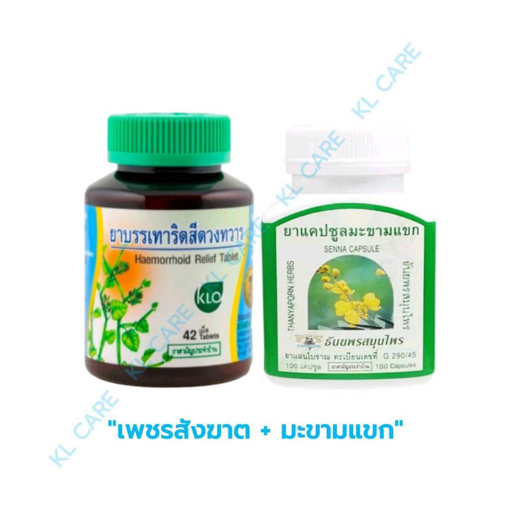 Khaolaor ยาบรรเทาริดสีดวงทวาร เพชรสังฆาต มะขามแขก ขาวละออ ธันยพรสมุนไพร 42/100 แคปซูล ของแท้100%