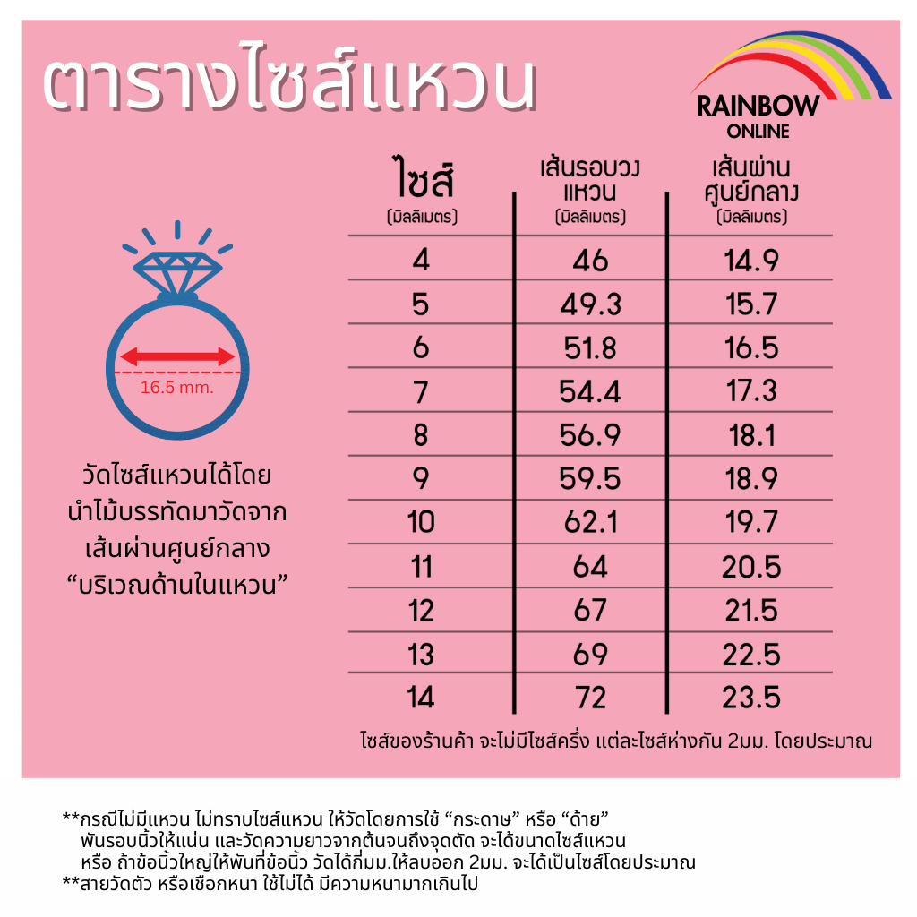 Size USA วัดเส้นรอบวงแหวน (หน่วยเป็นมิลลิเมตร)