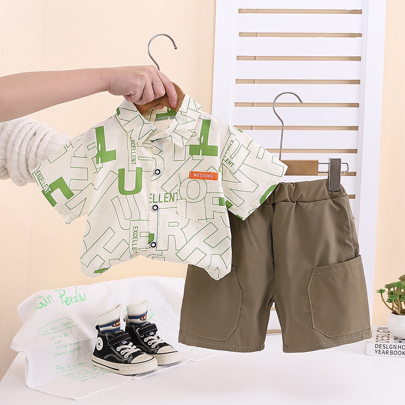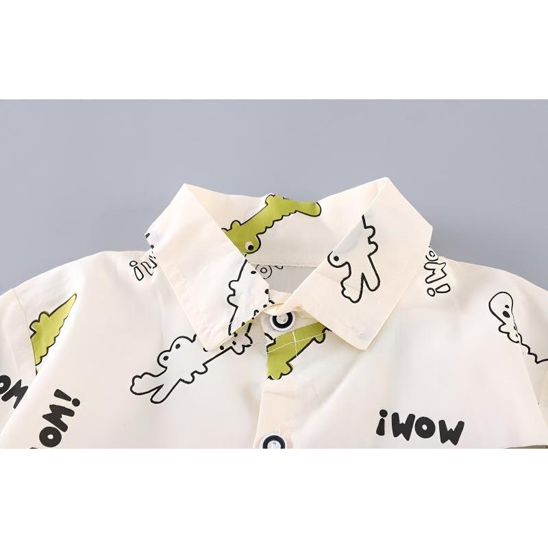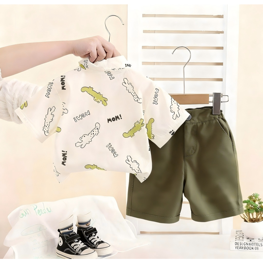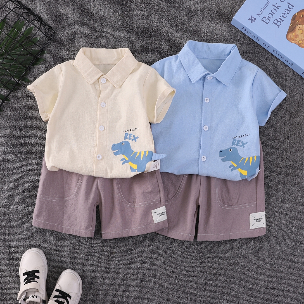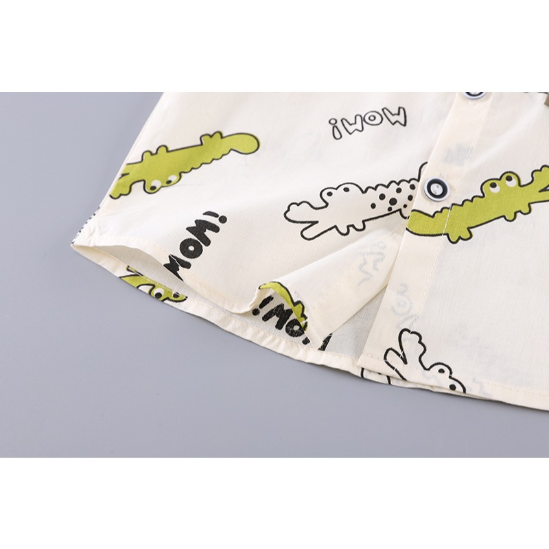 [สินค้าพร้อมส่ง] ชุดเด็กชาย (1-6 ปี) เสื้อโปโลแขนสั้นและกางเกงขาสั้น ชุดสองชิ้นสุดน่ารักนี้มาพร้อมลายพิมพ์จระเข้ ไดโนเสาร์ ตุ๊กตาหมี และตัวอักษร ผลิตจากผ้าฝ้ายเนื้อนุ่ม ระบายอากาศได้ดี สวมใส่สบาย