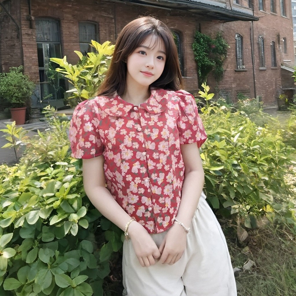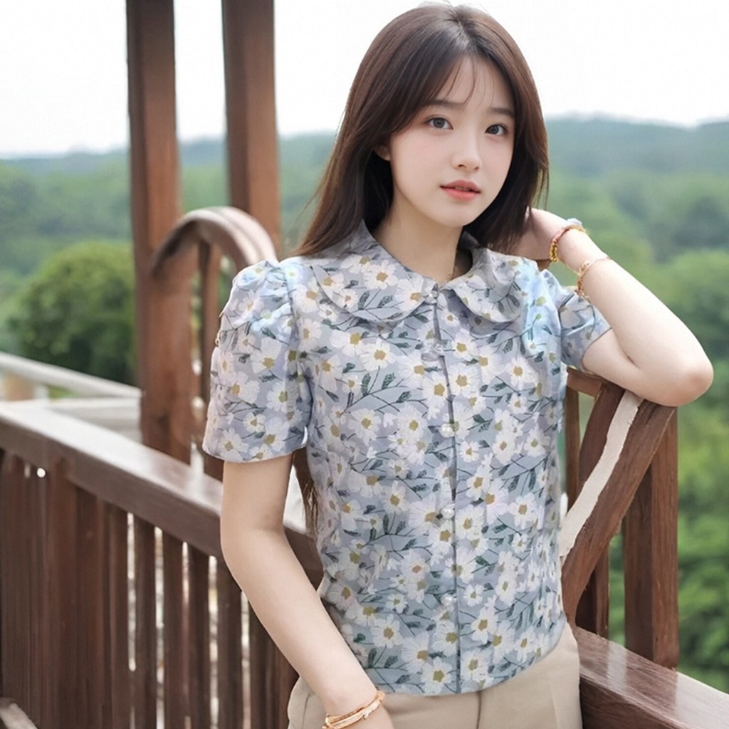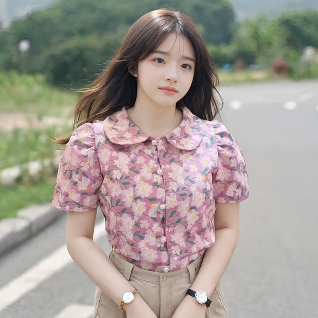 เสื้อเชิ้ตแขนฟู ลายดอกไม้ สไตล์ย้อนยุค ดีไซน์ใหม่ เสื้อ สงกรานต์ ผู้หญิง