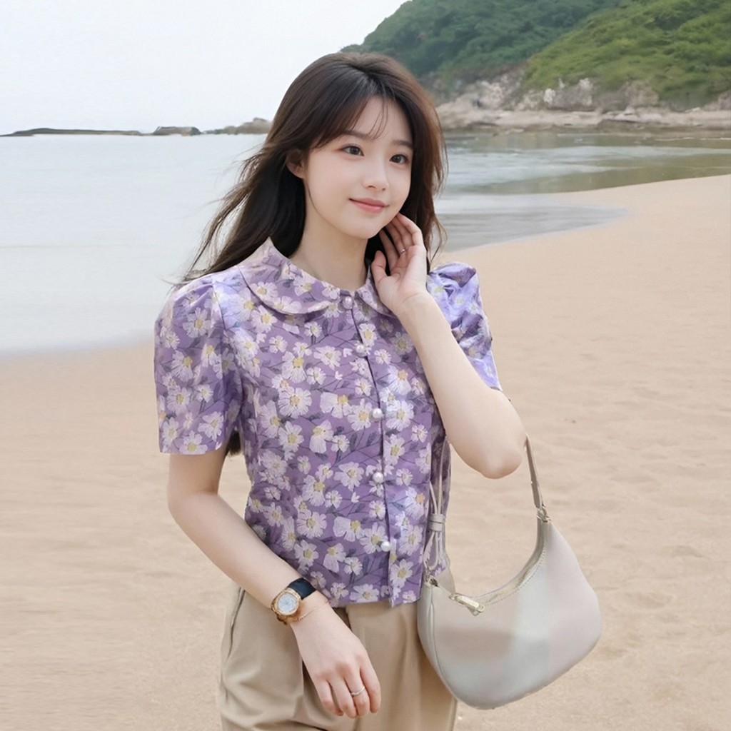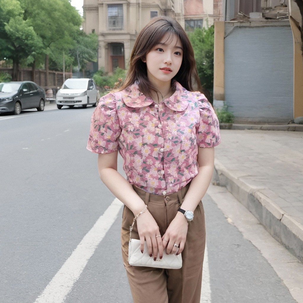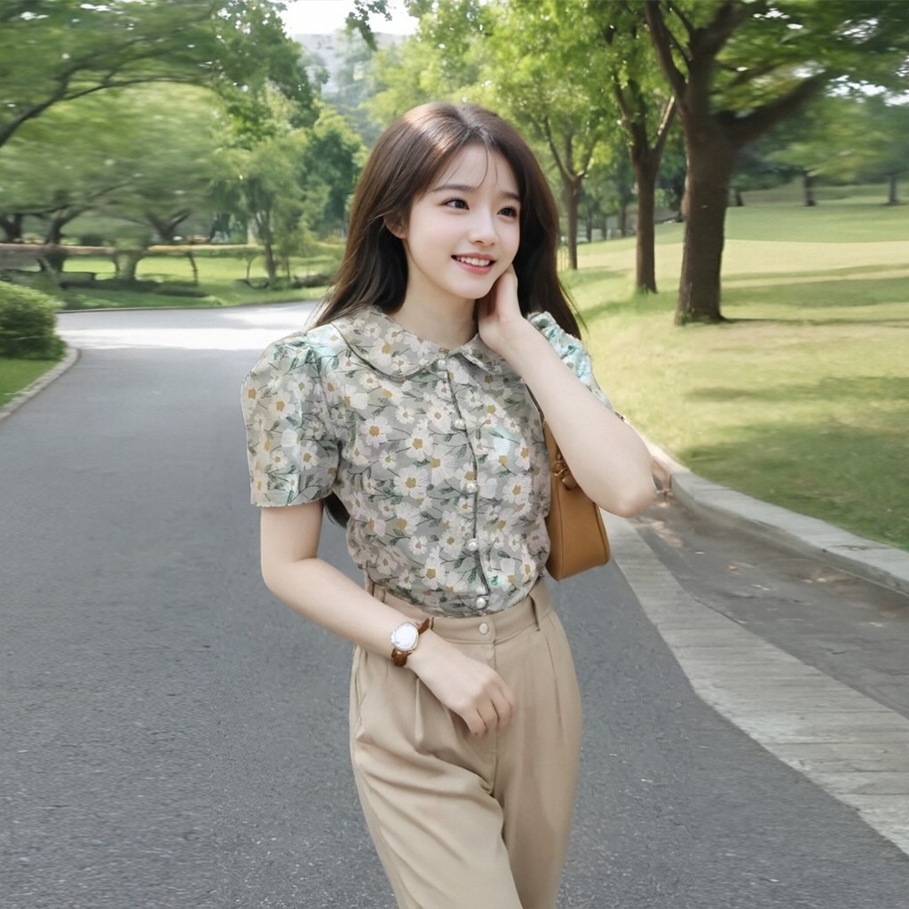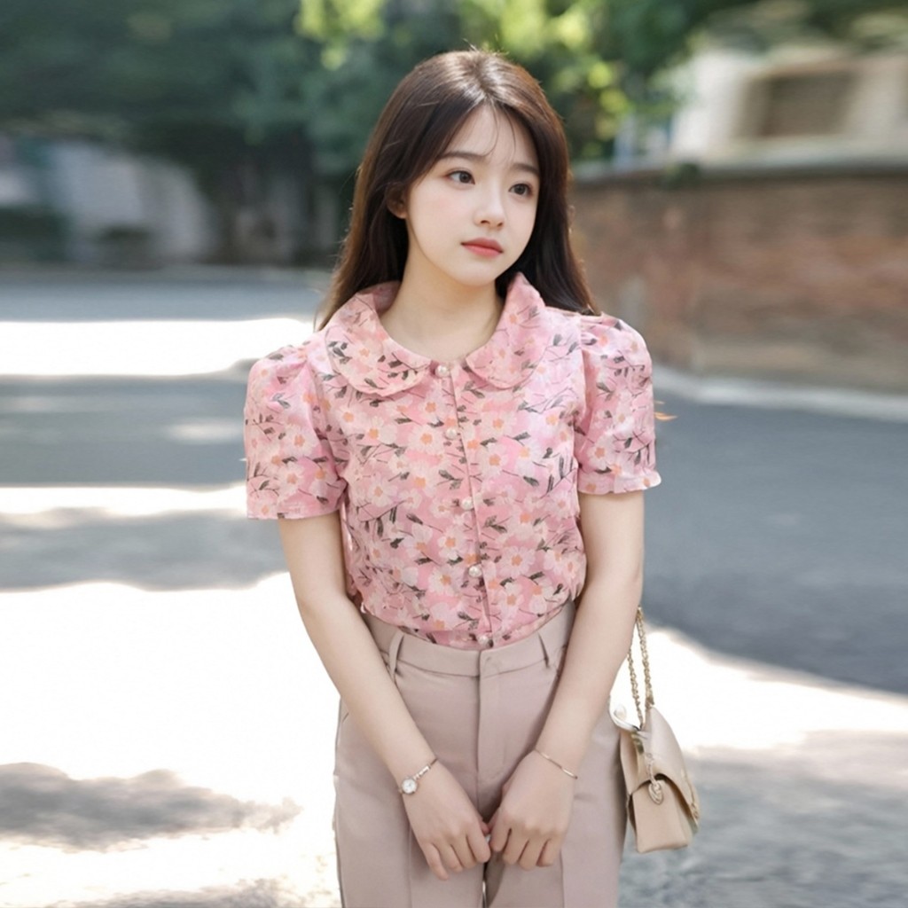 เสื้อเชิ้ตแขนฟู ลายดอกไม้ สไตล์ย้อนยุค ดีไซน์ใหม่ เสื้อ สงกรานต์ ผู้หญิง