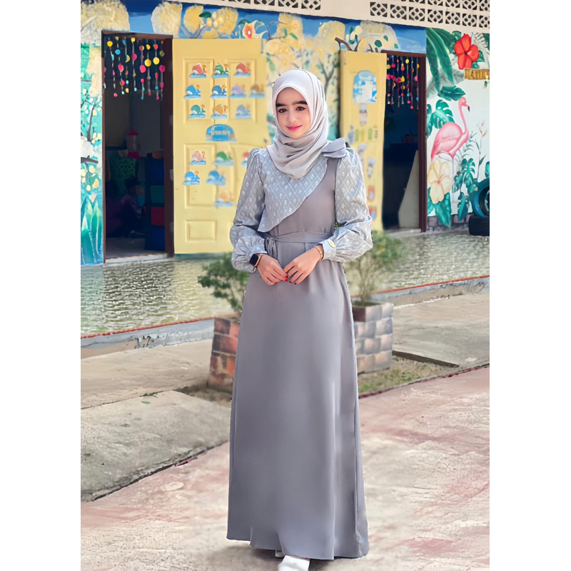 เดรสคุณครู สวยๆ ผ้าไหมอีตาลี่ ลาย งานเรียบ ใส่ไปทำงาน