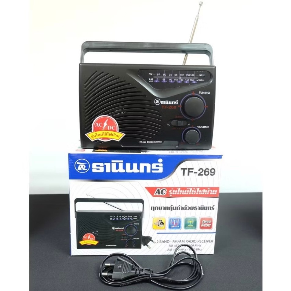 วิทยุธานินท์ ราคาถูก/TANIN fm/am รุ่นTF-268 ใช้ไฟได้และถ่านได้
