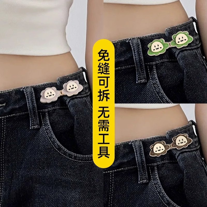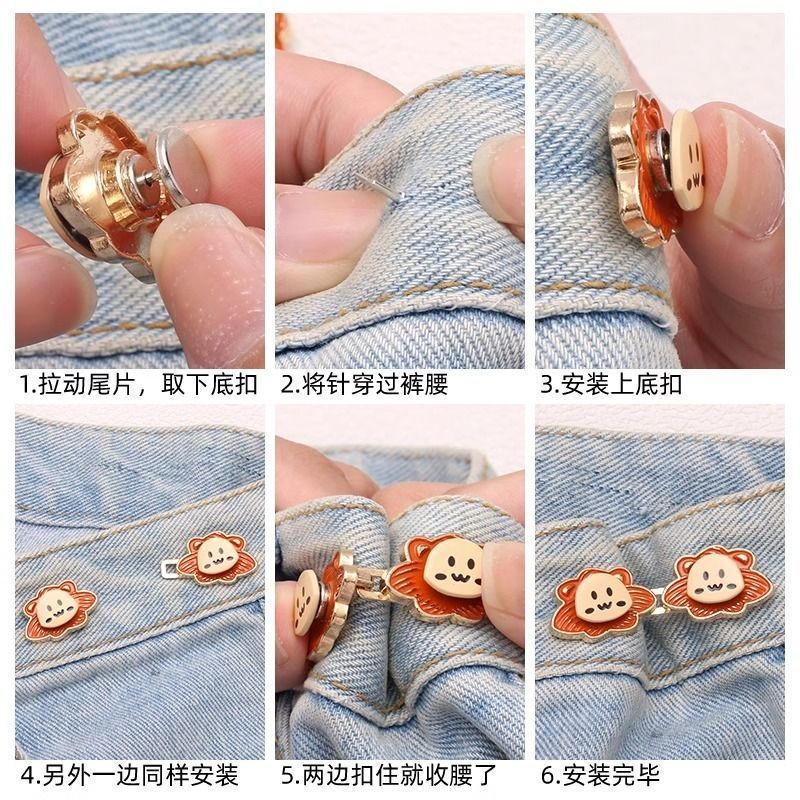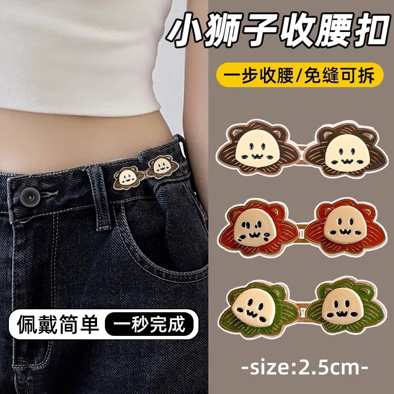 Lion เอวปุ่มกางเกงยีนส์ปรับเอวหัวเข็มขัด