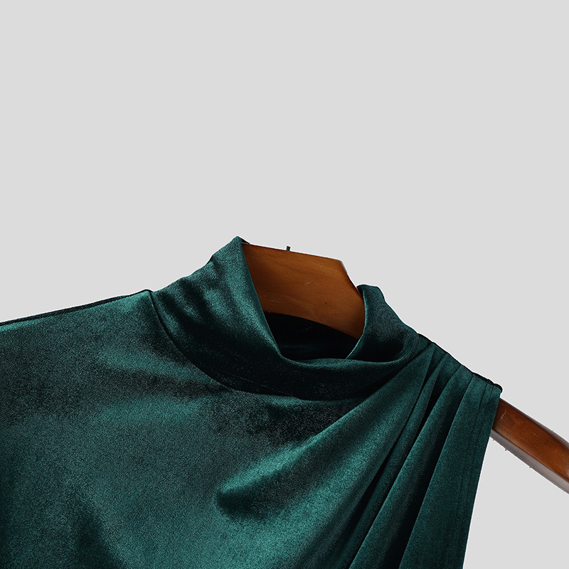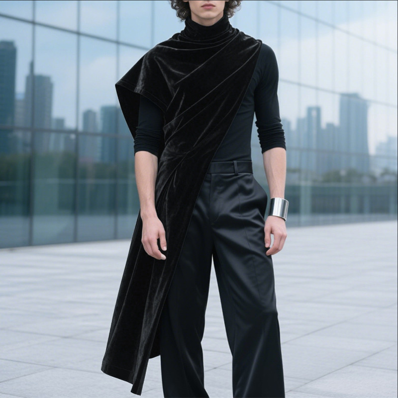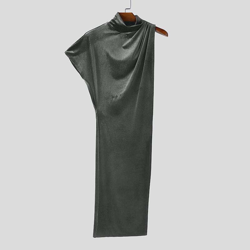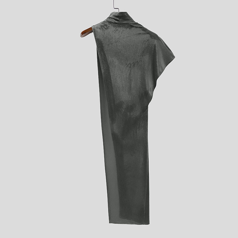 เสื้อยืดแขนสั้นสำหรับผู้ชาย ทรงไม่สม่ำเสมอ ให้ลุคทันสมัย