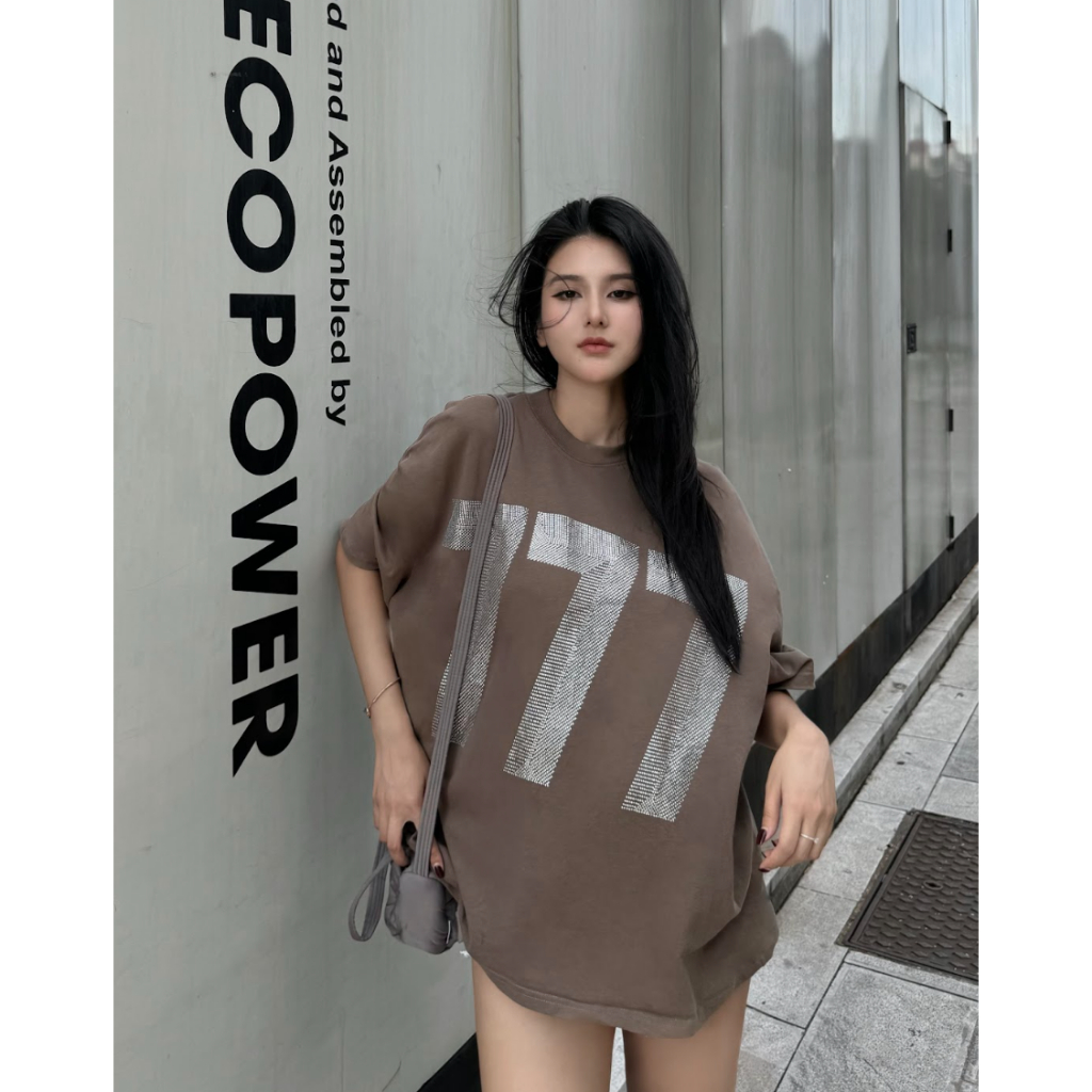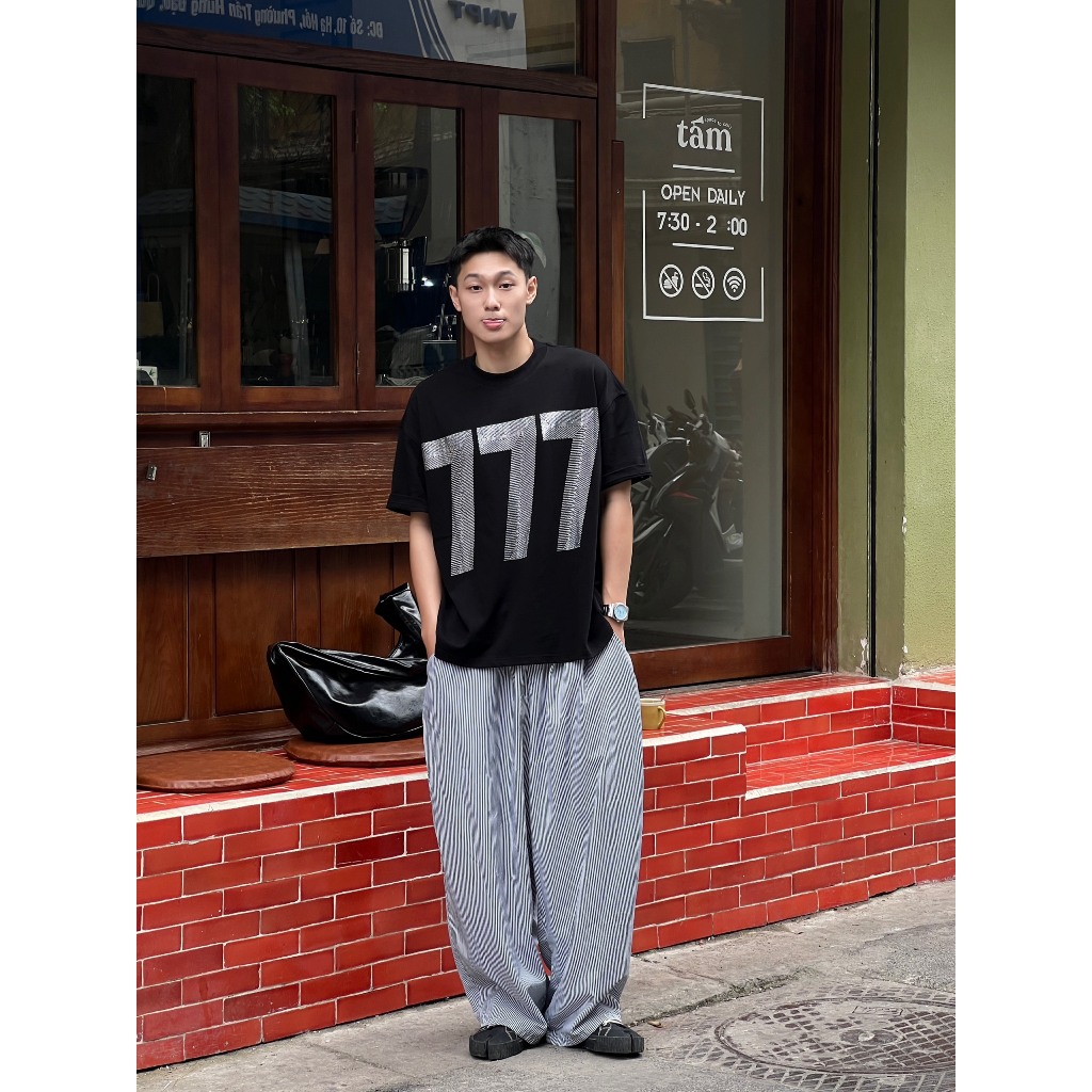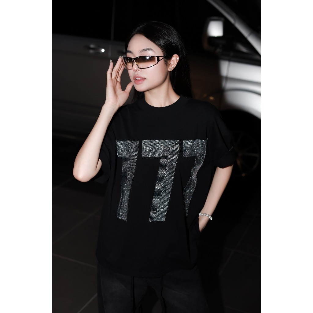 •กราฟิกหมายเลข 777 ติดหินที่ด้านหน้าเสื้อ
