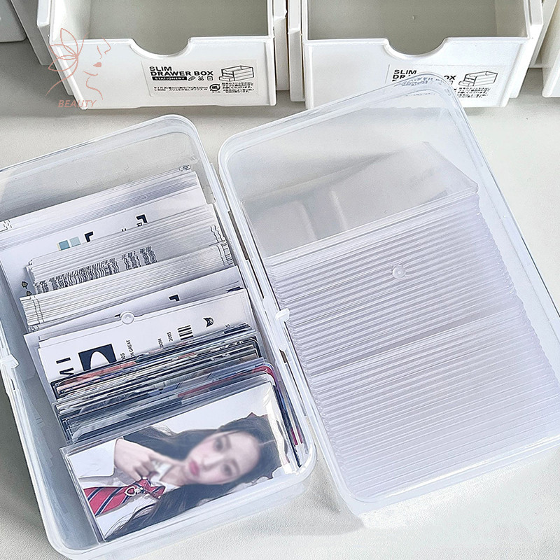 [maybeauty] Photocards Storage Box Transparent Stickers Korea Idol Card Holder Desk Storage Organizer Classification Box Stationery {TH}