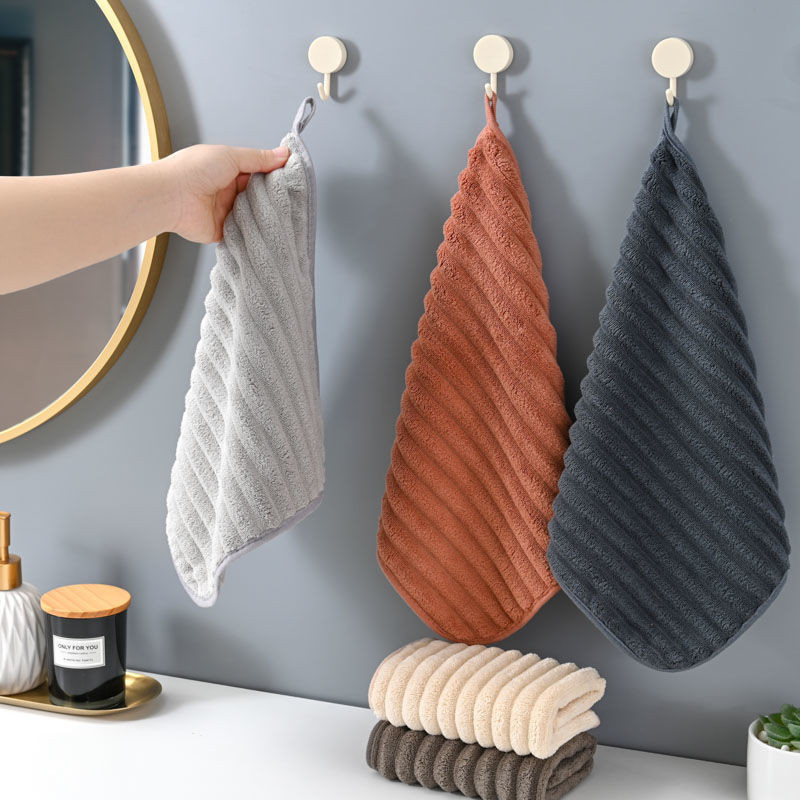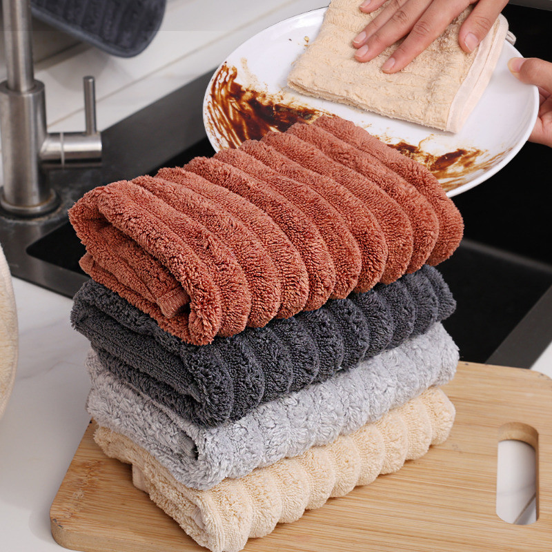 [3-5 วันมาถึง] [ ที่โดดเด่น ] ผ้าเช็ดมือกํามะหยี่ปะการัง-อุปกรณ์ทําความสะอาดบ้าน-แผ่นใยขัดเฟอร์นิเจอร์-ผ้าล้างจานหนา-บนโต๊ะอาหารเช็ดเศษผ้า-แขวนได้ดูดซับน้ําล้างทําควา