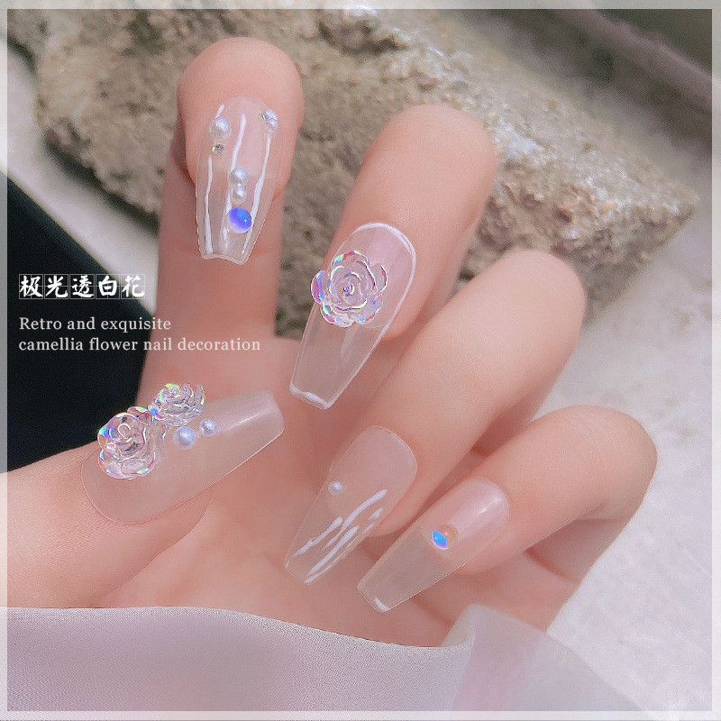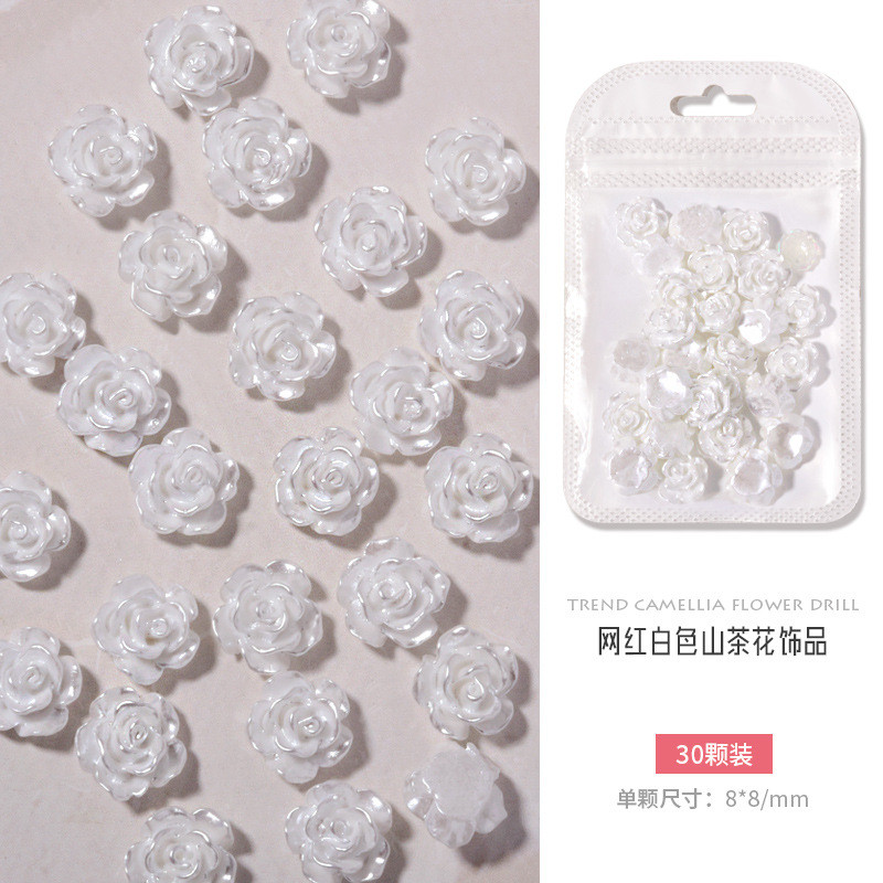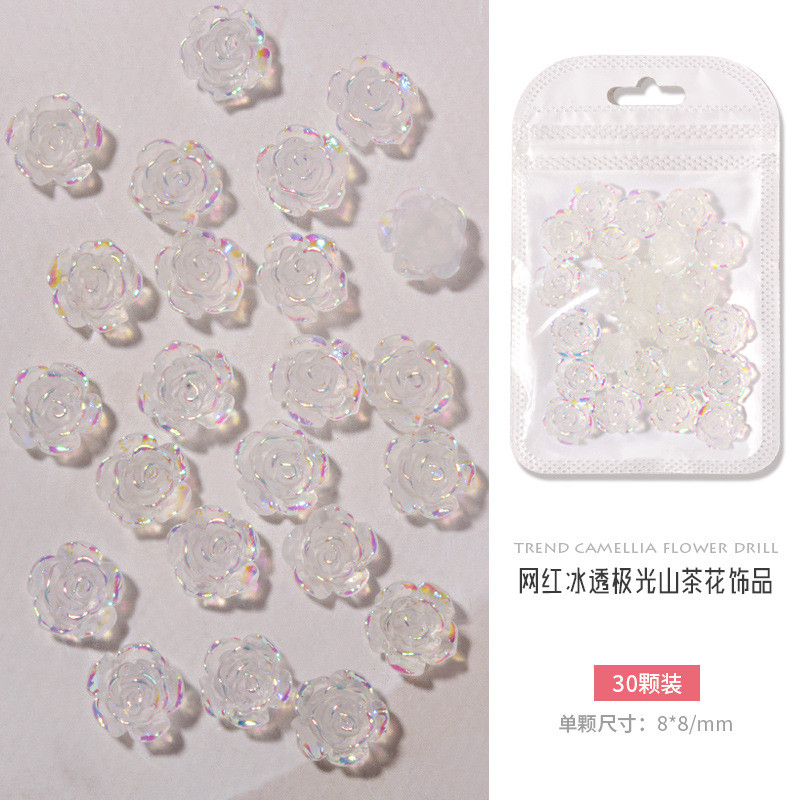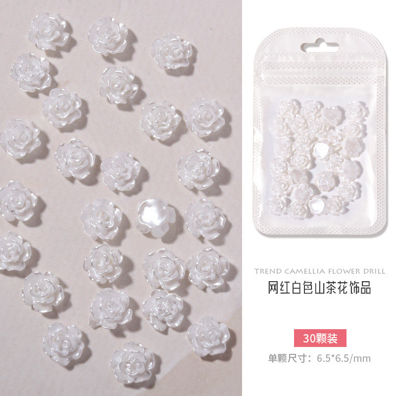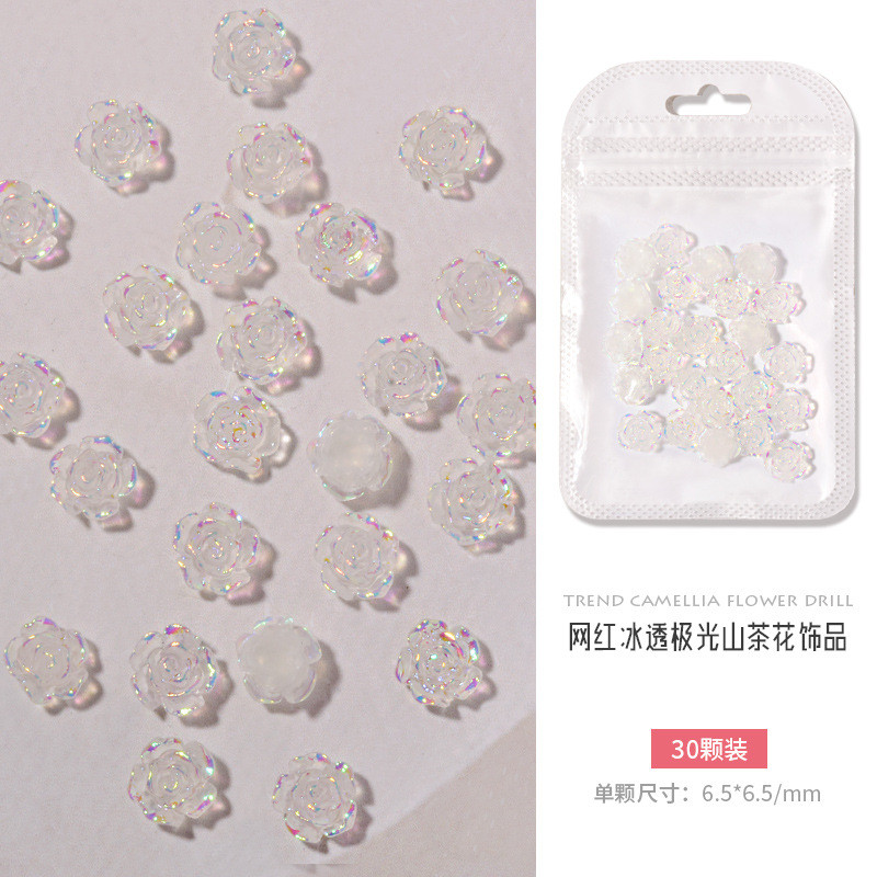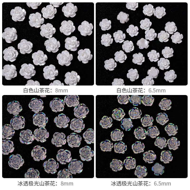 ตกแต่งเล็บ 30 ชิ้น Camellia เครื่องประดับเรซิ่นเพชรตกแต่งเล็บ Symphony ขนาดสามมิติดอกไม้อุปกรณ์เสริม