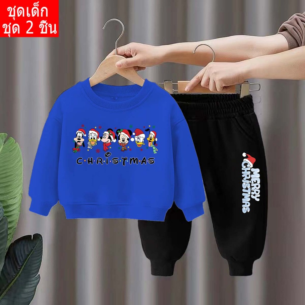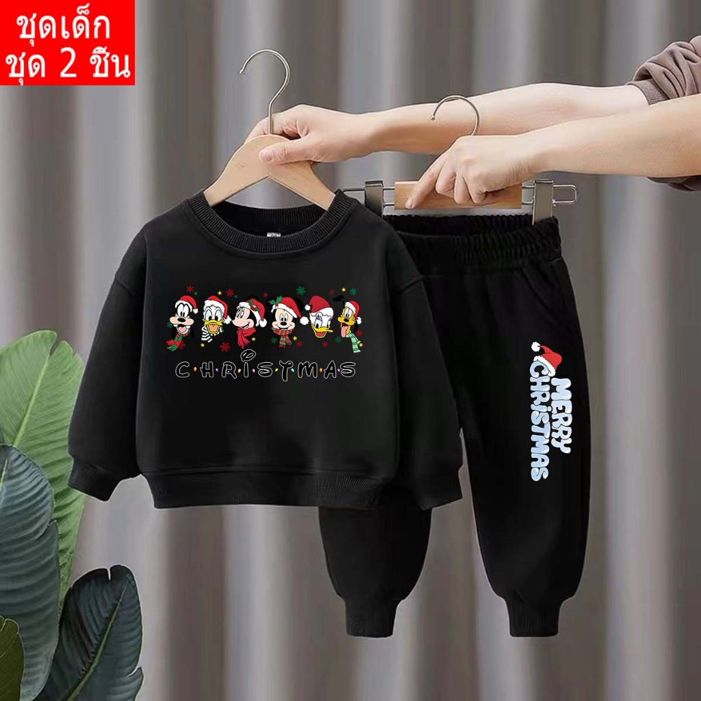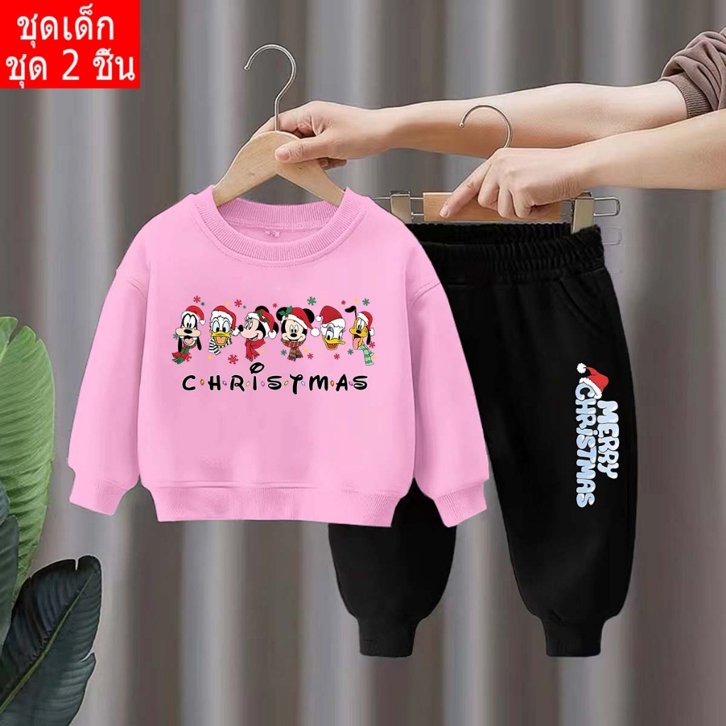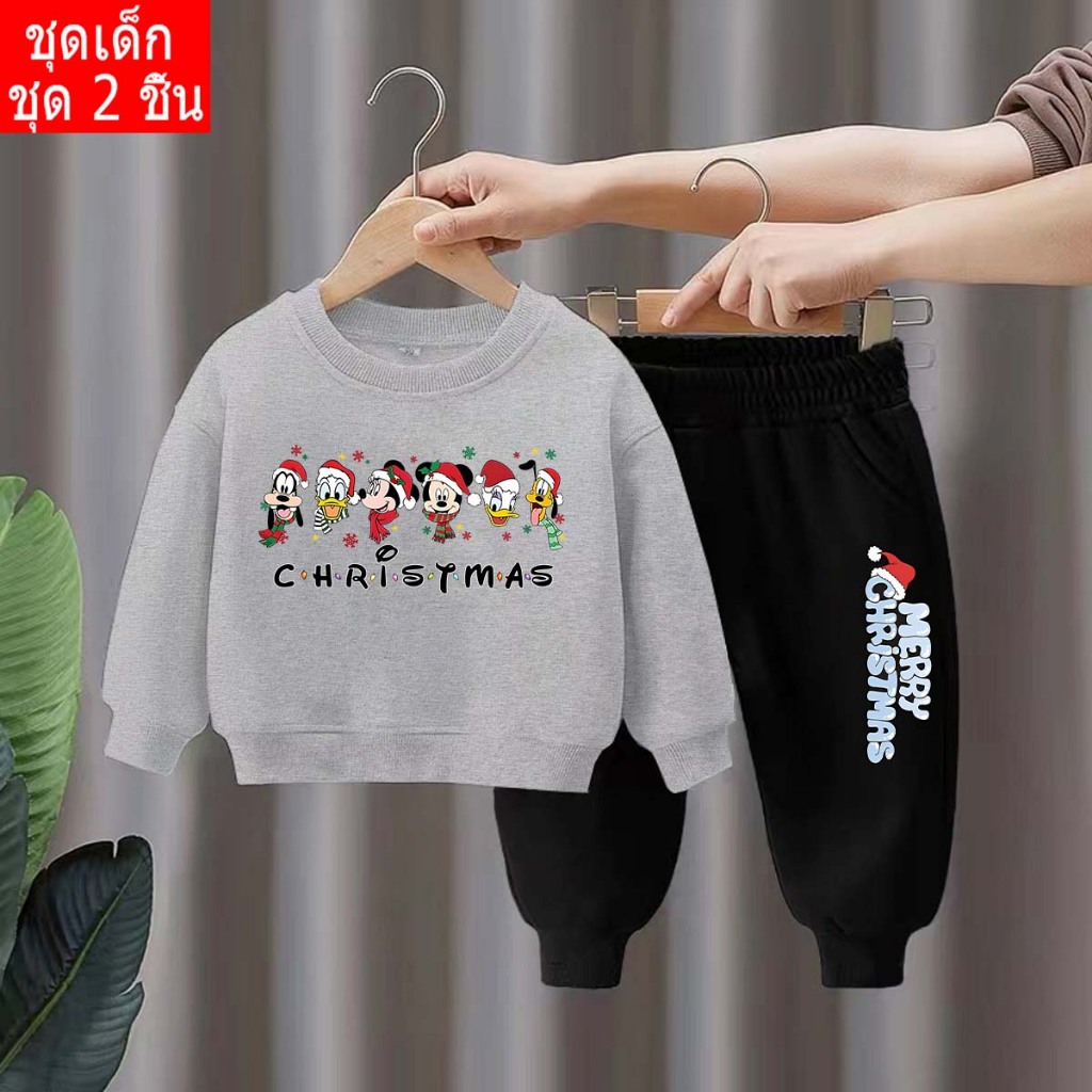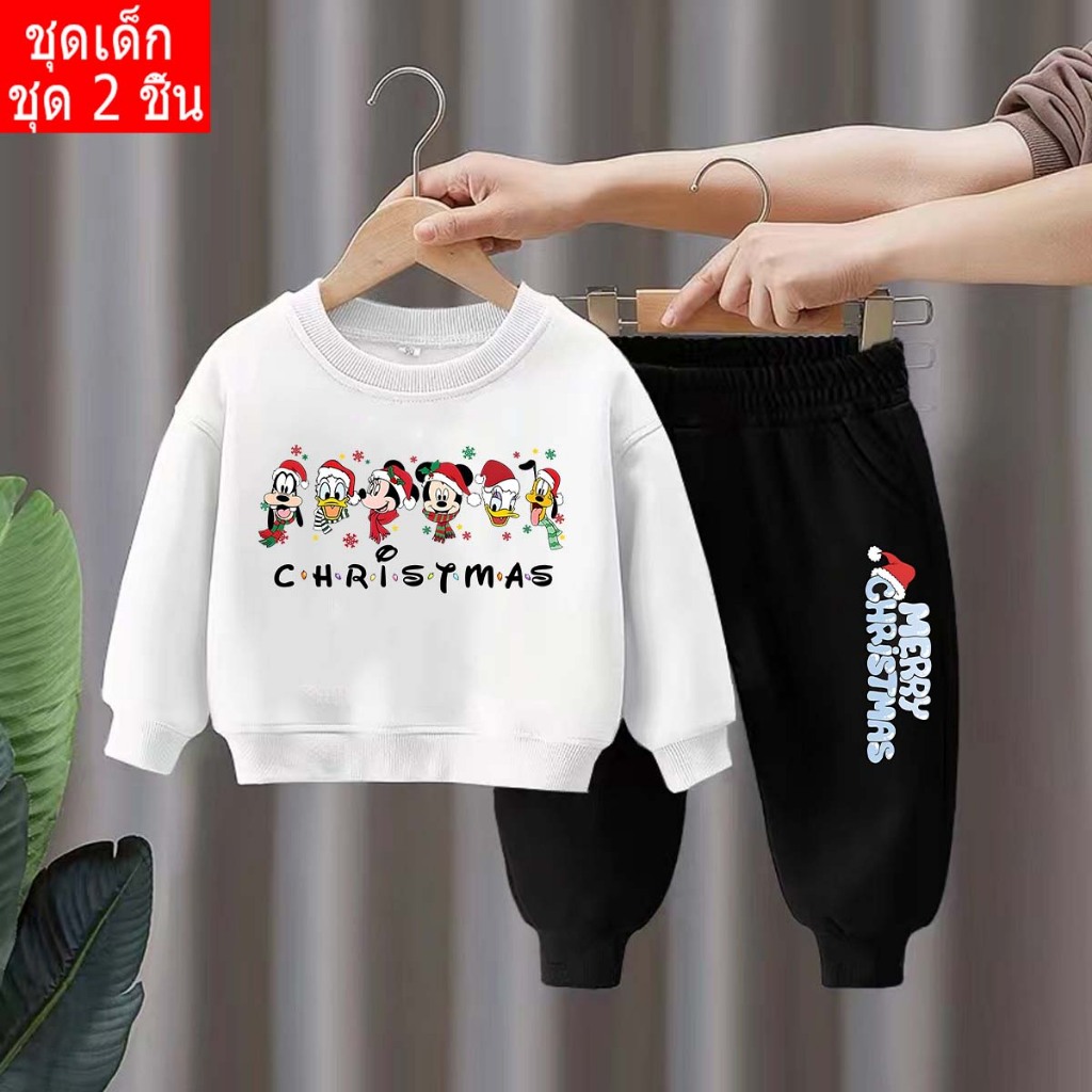 J-1209-O+TKU1220 ชุดเช็ทเด็ก2ชิ้นเสื้อแขนยาวคอกลม+กางเกงขายาวเด็ก ลายคริสต์มาสมาใหม่น่ารักมาก ทรงสวยใส่สบาย