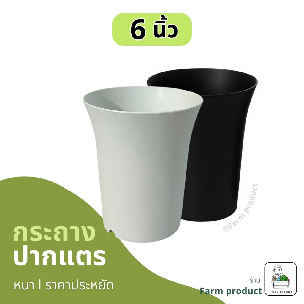 กระถางปากแตร 6 นิ้ว. ผิวด้าน กระถางพลาสติกดำ กระถางแคคตัส