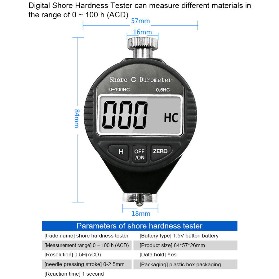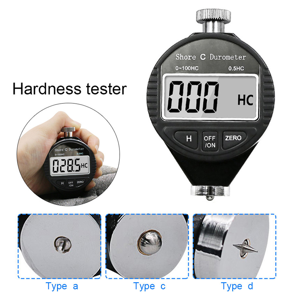 Shore A / CD Hardness Tester ยางพลาสติกยางซิลิโคนเครื่องมือทดสอบดิจิตอล Durometer จอแสดงผล LCD 0-100HABC จอแสดงผลดิจิตอล