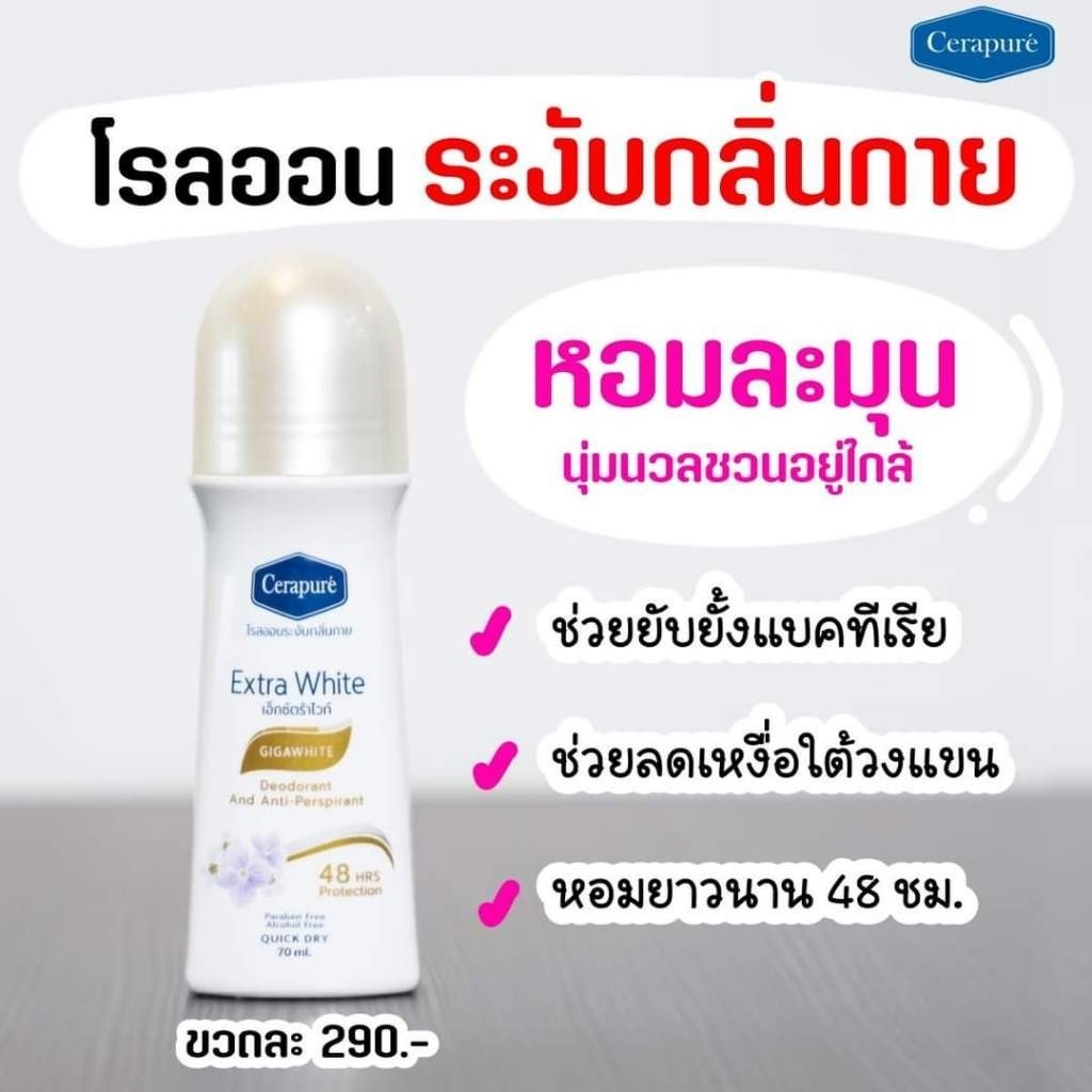 Cerapure?โรลออน เซราพิวเร่ ระงับกลิ่นกาย ระงับเหงื่อ แถมสบู่เซราพิวเร่ มี 4 สูตร ขนาด 70 ml.