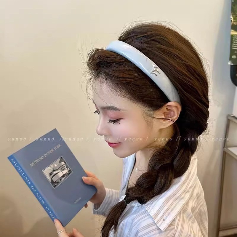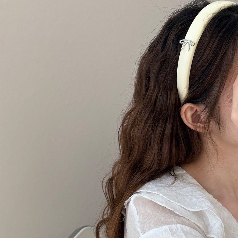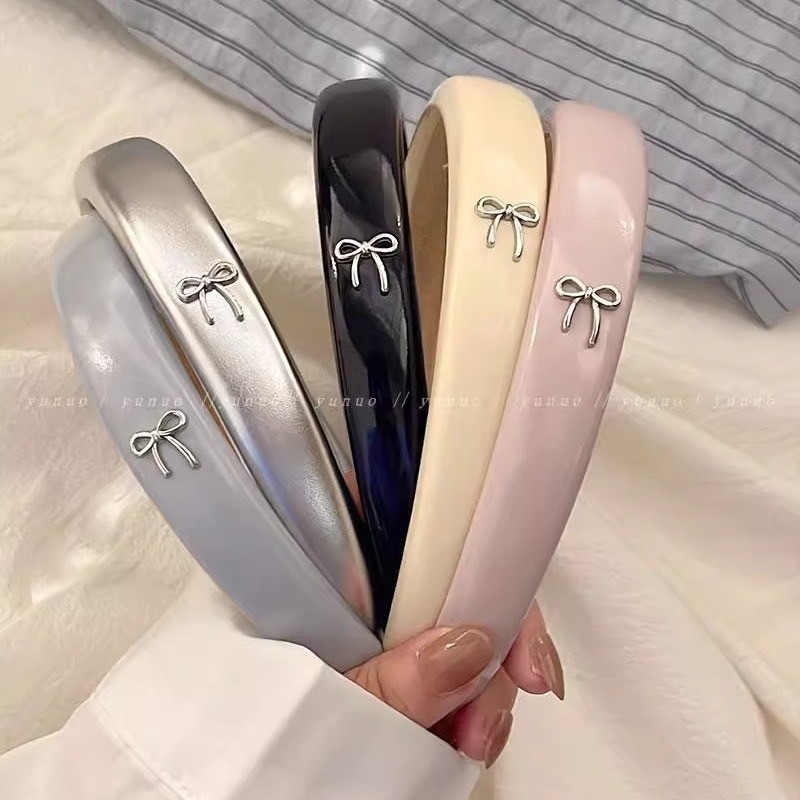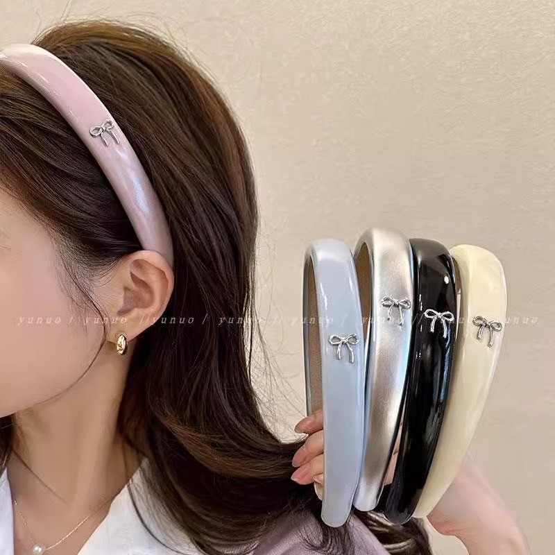 ?? ที่คาดผมแฟชั่นเกาหลีฟองน้ำหนัง ประดับด้วยโบว์เงิน??