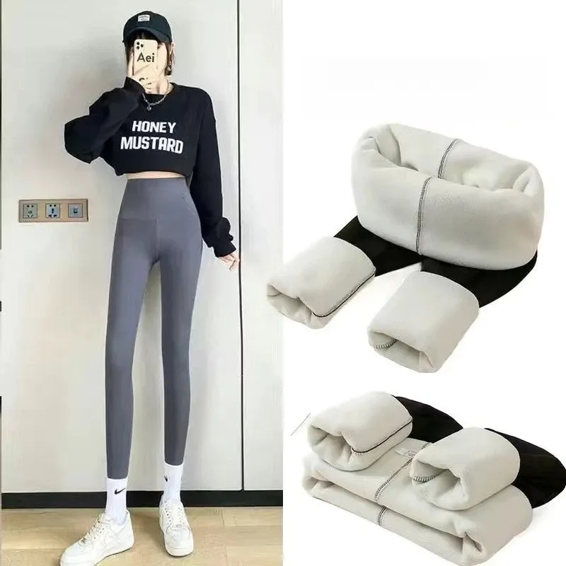 กางเกงปลาฉลามขนแกะใส่ด้านนอกกางเกงเลกกิ้งเอวสูงบุขนกำมะหยี่หนาพิเศษสำหรับฤดูใบไม้ร่วงและฤดูหนาวกางเกงโยคะสำหรับผู้หญิงกางเกงบาร์บี้