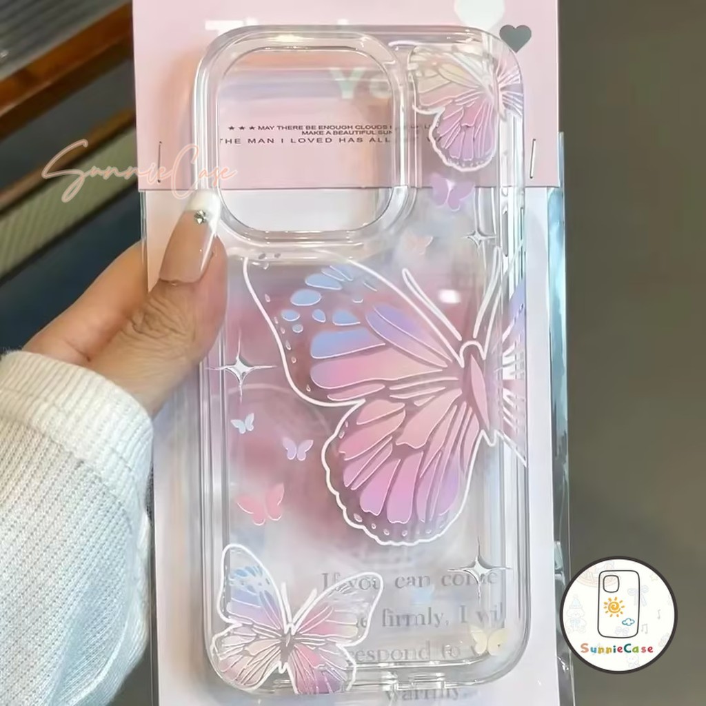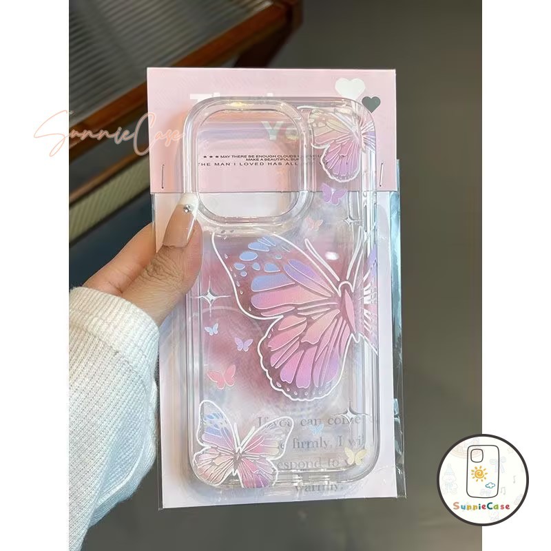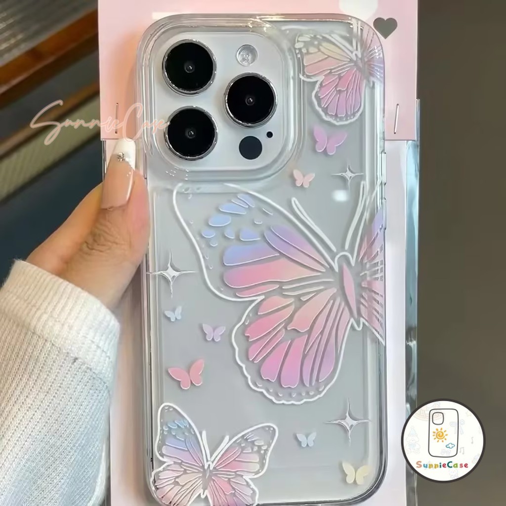 เคสไอโฟนXR IPhone 16 11 13 12 15 14 Pro Max X XR XS 7 Plus Max 8 Plus SE 2020 สไตล์ใหม่ เปลือกนิ่ม ผีเสื้อ เรียบง่าย เคส