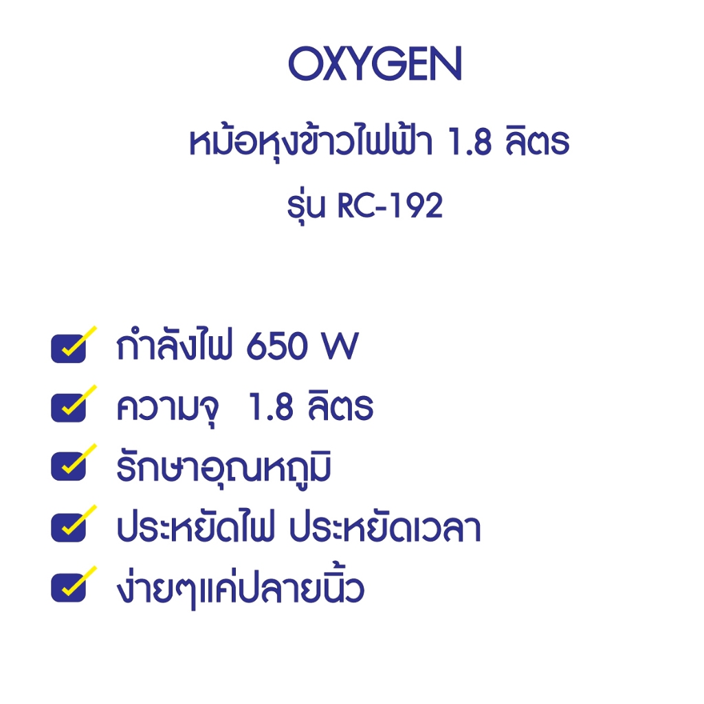 OXYGEN หม้อหุงข้าว 1.8 ลิตร รุ่น RC-192 หม้อเคลือบ หม้อหุง หม้อข้าว หุงข้าว
