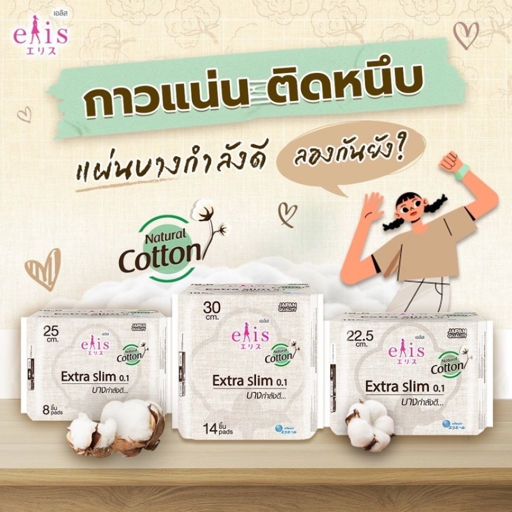 Elis Extra Slim 0.1 เอลิส เอ็กซ์ตร้าสลิม 0.1 ผ้าอนามัยขนาด 22.5cm./25cm./30cm./35cm