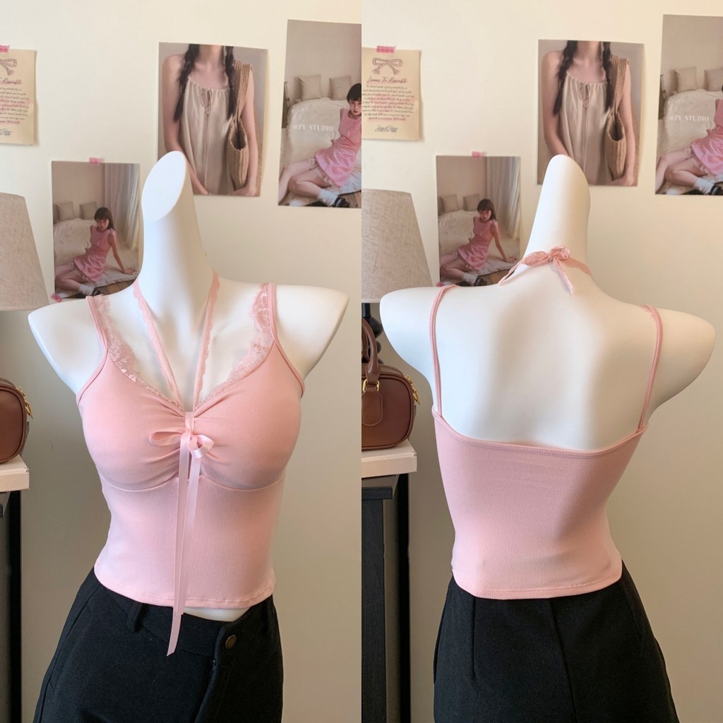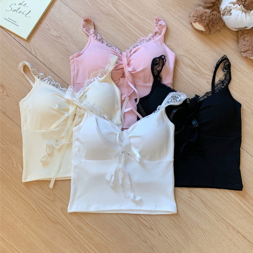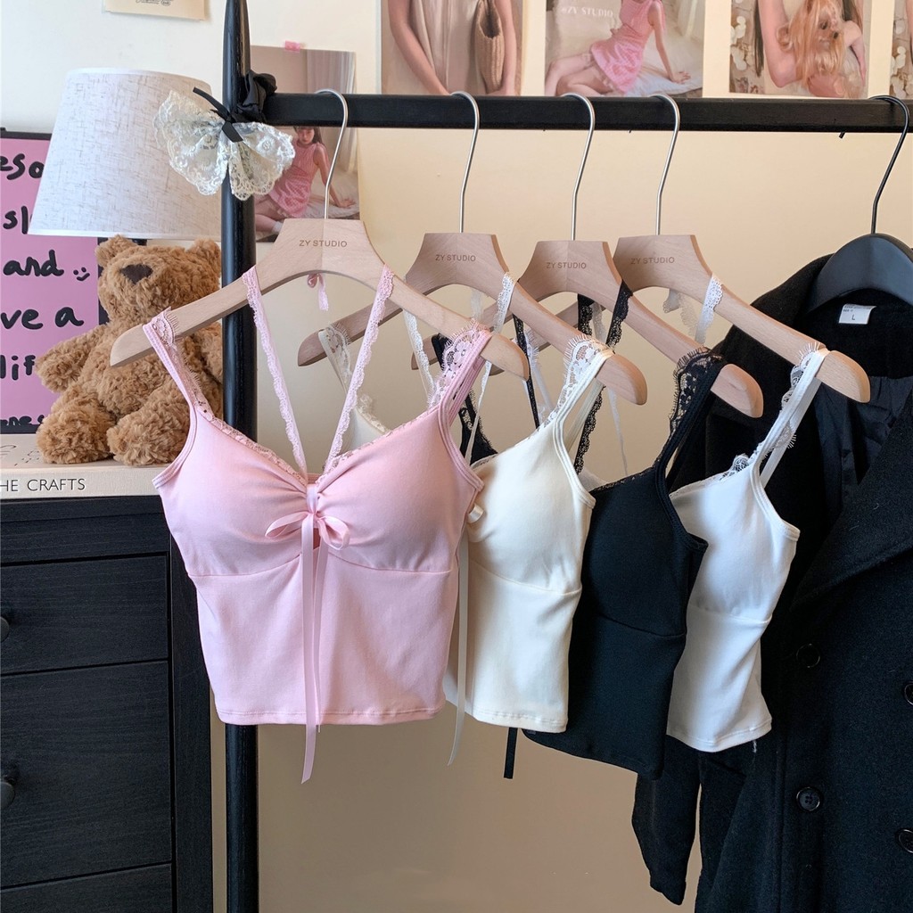 L.A Shop★สไตล์ใหม่★เสื้อสายเดี่ยว เสื้อสายเดี่ยว มีฟองน้ำ ยืดกำลังดี แต่งสายเพิ่มสีพาสเทล “FY1822”