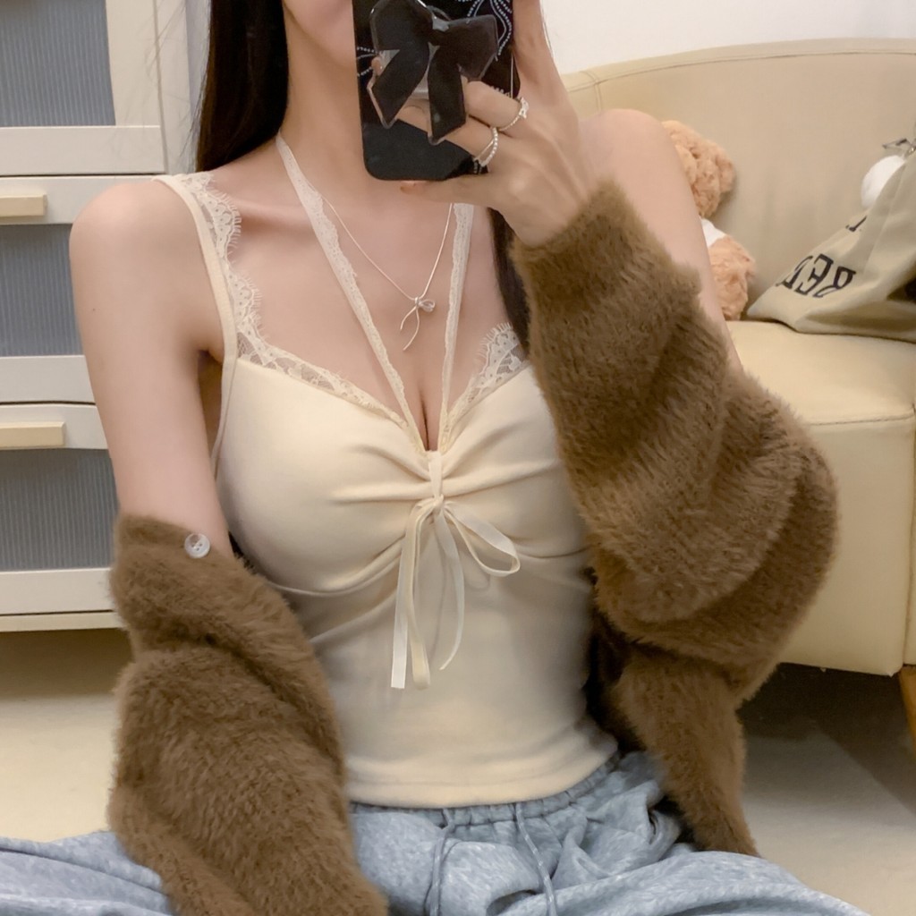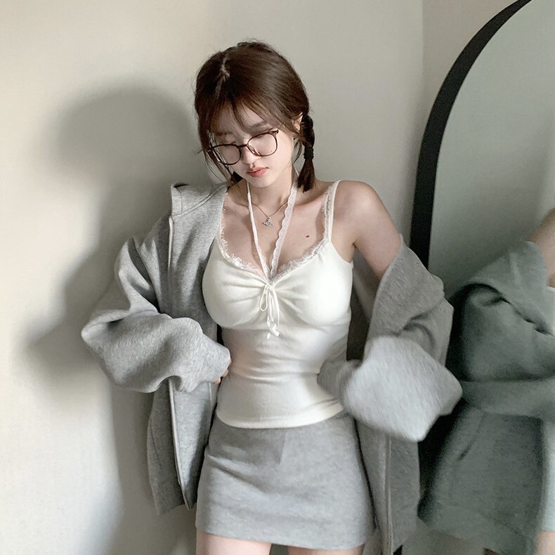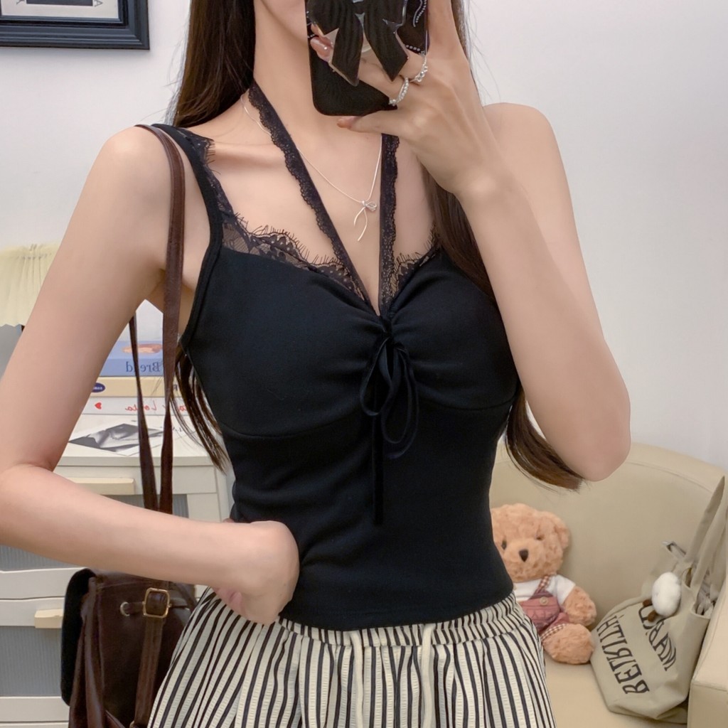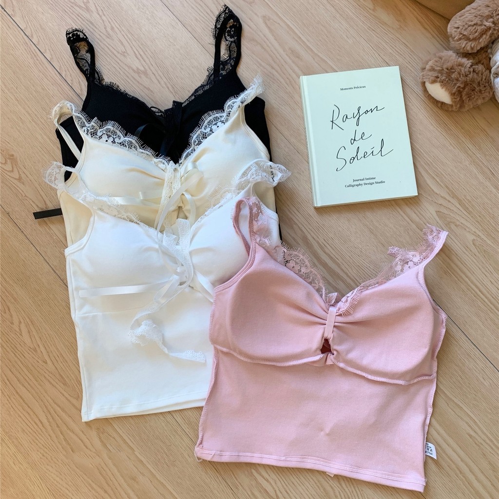 L.A Shop★สไตล์ใหม่★เสื้อสายเดี่ยว เสื้อสายเดี่ยว มีฟองน้ำ ยืดกำลังดี แต่งสายเพิ่มสีพาสเทล “FY1822”