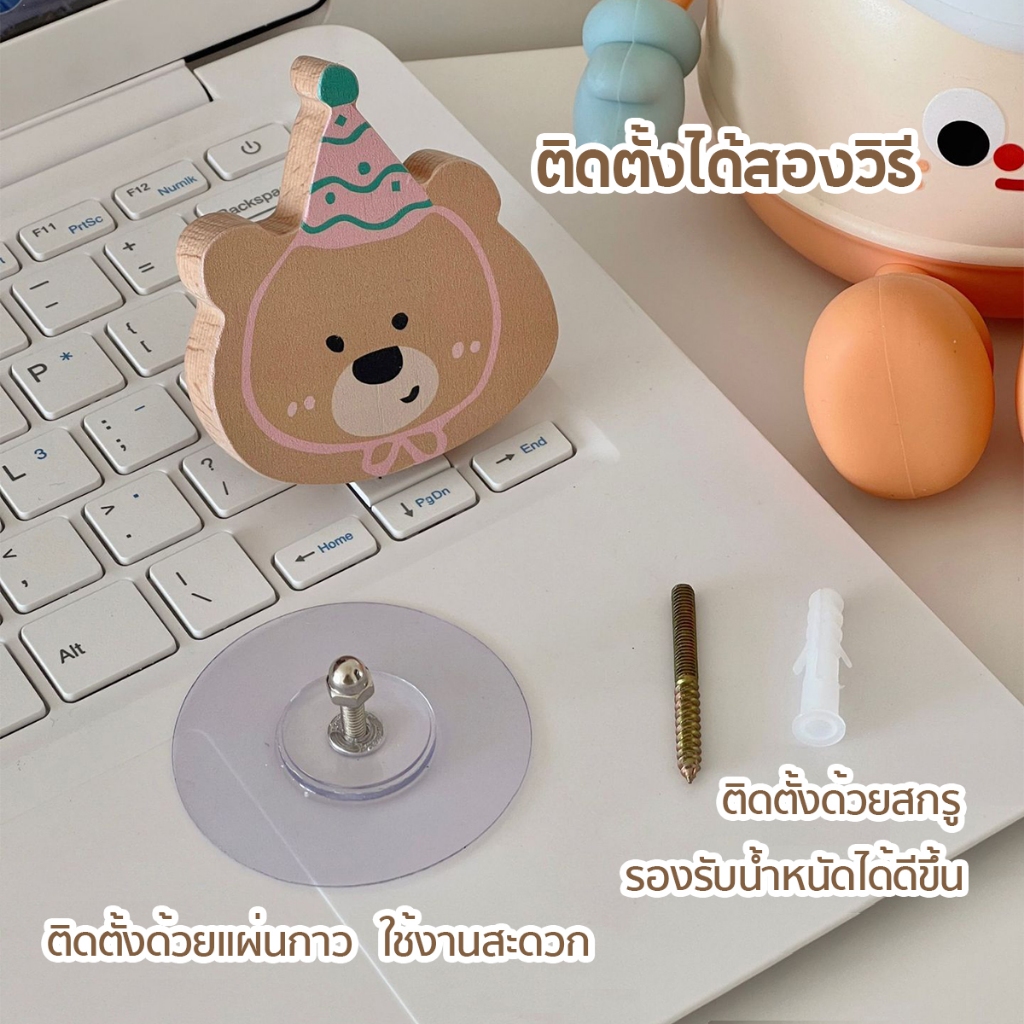 *ตะขอแขวนผ้าแขวนกระเป๋า ตะขอไม้ แบบไม่ต้องเจาะรู รูปสัตว์น่ารัก สำหรับแขวนผ้าต่างๆ กระเป๋าและสิ่งของอื่น ไม้แท้100%*