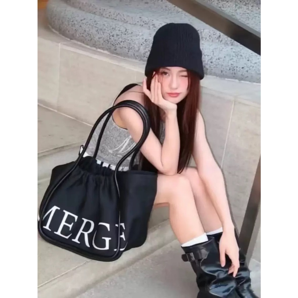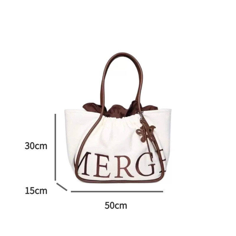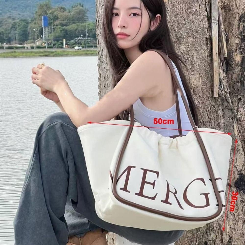 Tote Bag, กระเป๋าสะพายผ้าแคนวาสสีทึบ, พิมพ์ตัวอักษรความจุขนาดใหญ่ Commuting Bag