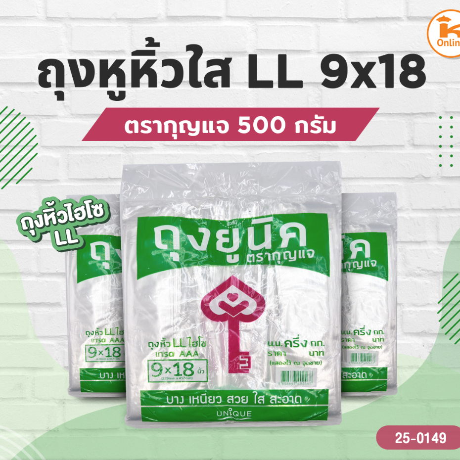 ถุงหูหิ้วใส LL. ตรากุญแจ 500 กรัม ถุงหิ้วไฮโซ LL ** มีหลายขนาด**
