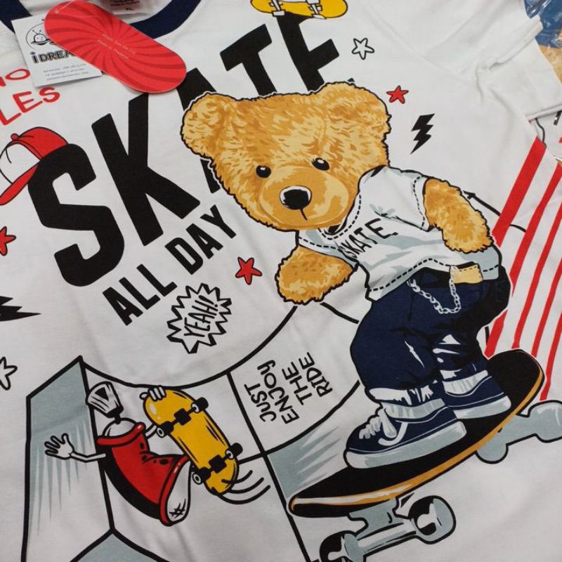 เสื้อแขนสั้นสีขาว รวมลายหมี ผลิตจากผ้าคอตตอนเกรดดี