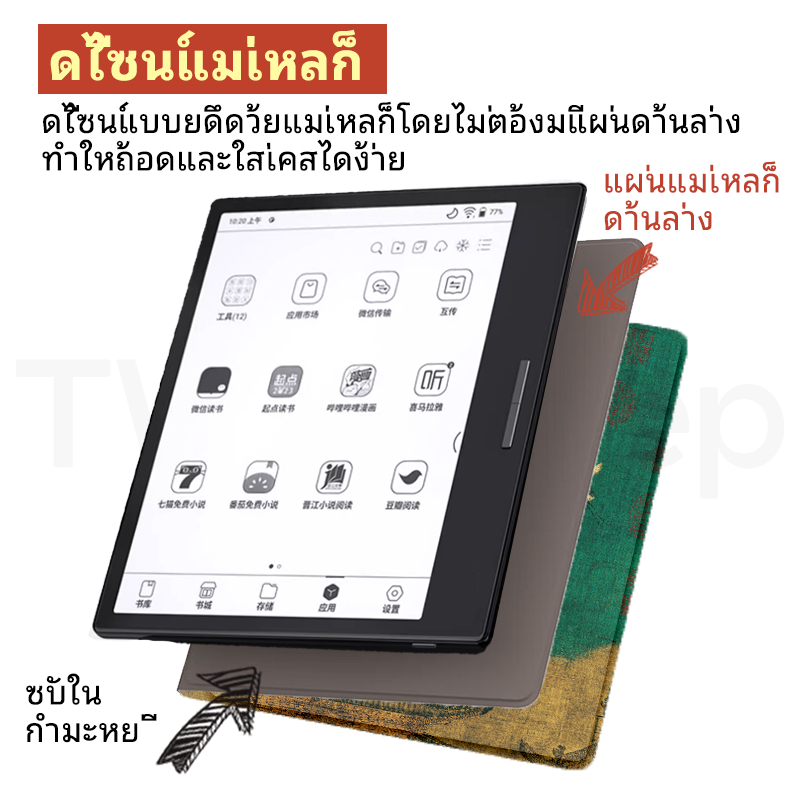 เคสนี้ออกแบบมาโดยเฉพาะสำหรับเครื่องอ่านหนังสืออิเล็กทรอนิกส์ขนาด 7 นิ้ว เช่น BOOX Leaf3, Leaf3C, ONYX Page, Go 7, Go Color 7 และ Go Color 7 Gen II