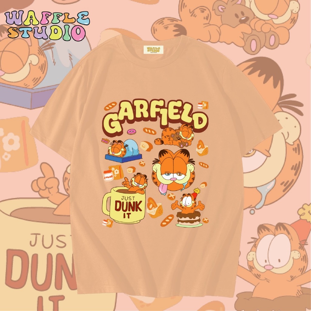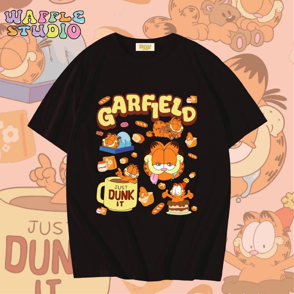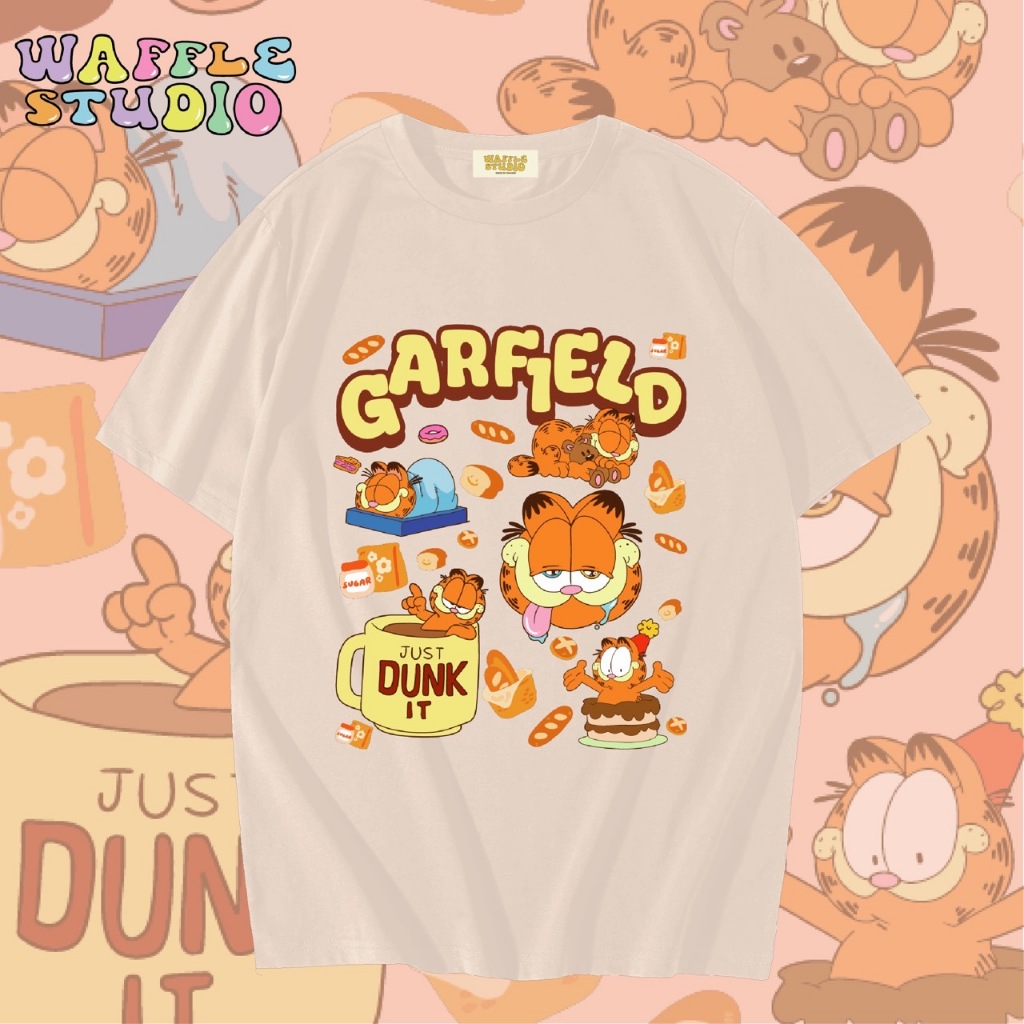 [ ส่งฟรี ? ] WS0764 เสื้อยืดโอเวอร์ไซส์ เสื้อยืดเกาหลี ผ้าคอตตอน 100% เสื้อยืด การ์ฟิลด์ Garfield แมว WAFFLE STUDIO