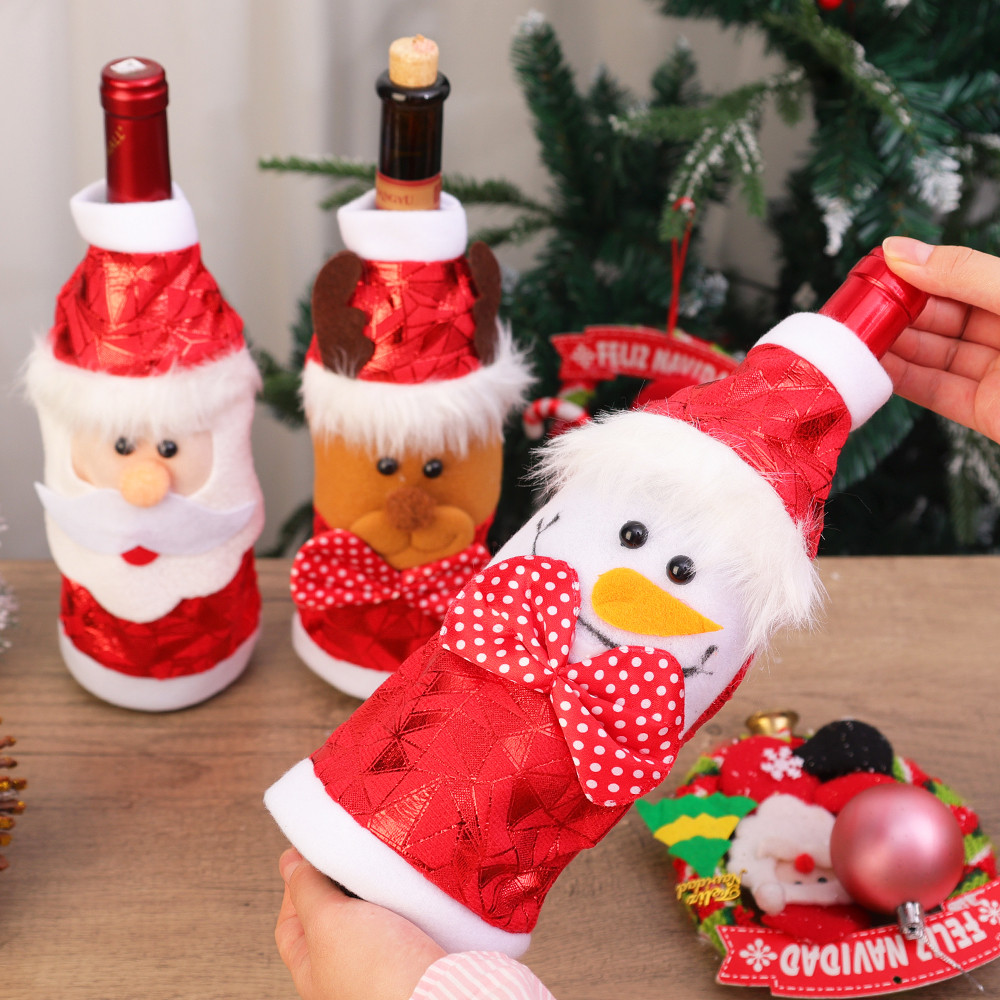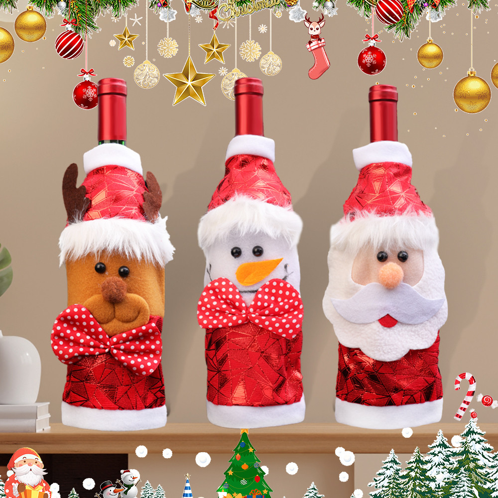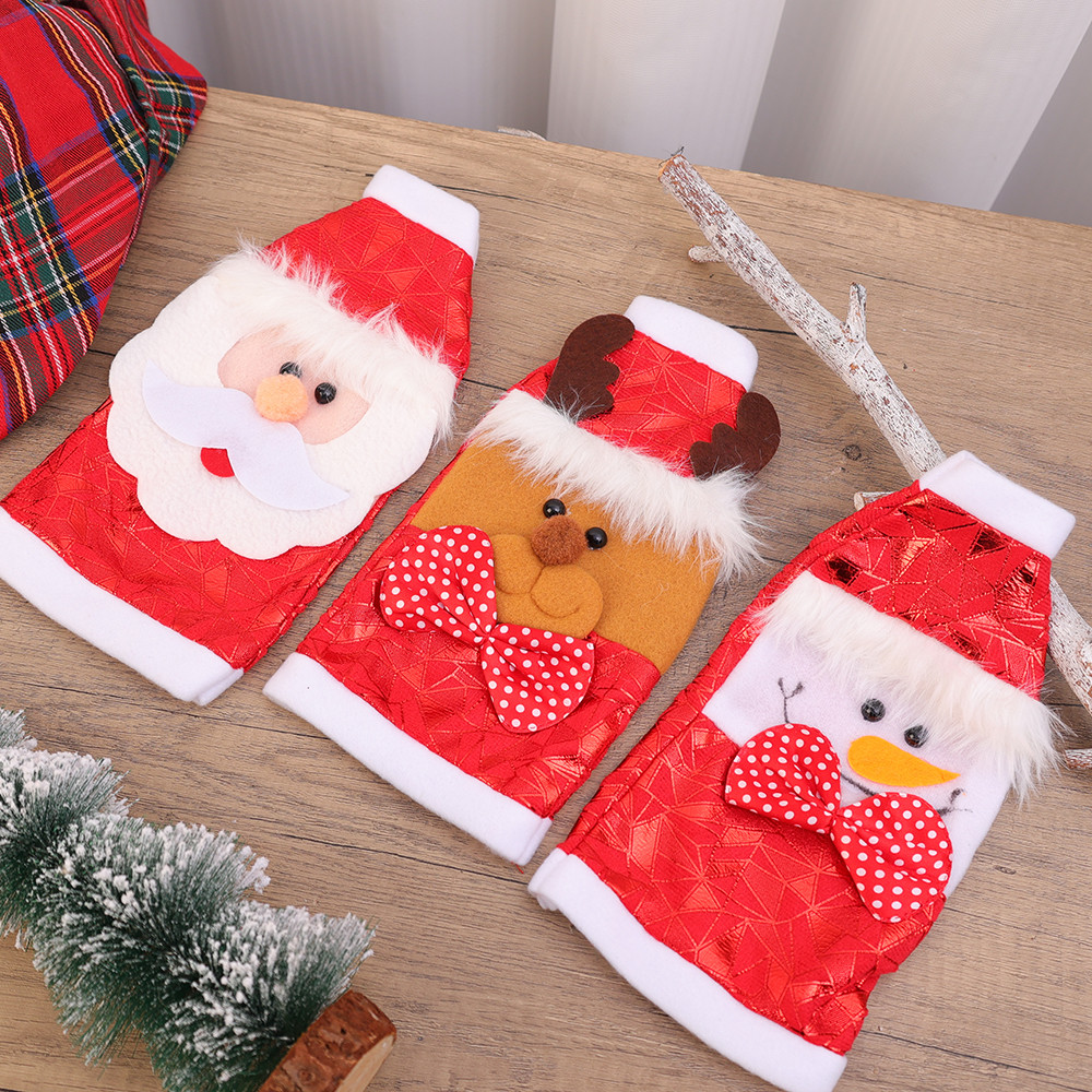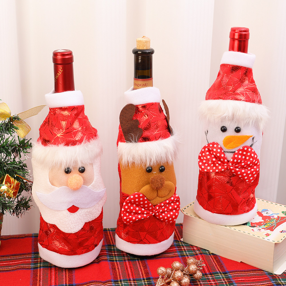 บ้านครัวคริสต์มาสพรรคตกแต่งโต๊ะ-คริสต์มาสขวดไวน์ปก-ขวดไวน์ถักเสื้อกันหนาวหมวก-สร้างสรรค์,การ์ตูน-ถุงเก็บขวดแชมเปญ