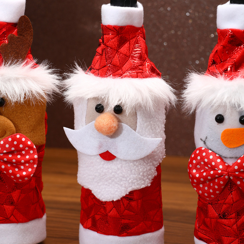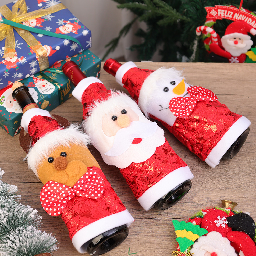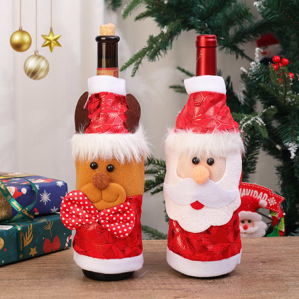 บ้านครัวคริสต์มาสพรรคตกแต่งโต๊ะ-คริสต์มาสขวดไวน์ปก-ขวดไวน์ถักเสื้อกันหนาวหมวก-สร้างสรรค์,การ์ตูน-ถุงเก็บขวดแชมเปญ