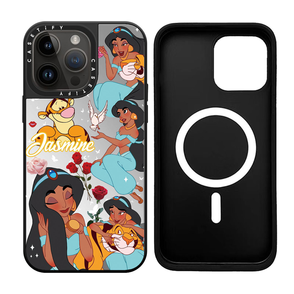 เจ้าหญิงจัสมินกระจกแม่เหล็กปลอกฮาร์ดกรณีโทรศัพท์สําหรับ ไอโฟน 16โปรแม็กซ์ 16มือโปร 16บวก 15โปรแม็กซ์ 14 13 12โปรแม็กซ์ 11กรณีห่อกันกระแทกด้านหลังอะคริลิหลั