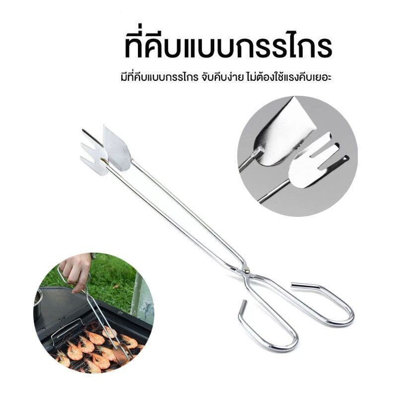 — ยาว 25.8/30.8/35 ซม. —ผลิตจากสแตนเลส — ใช้งานสะดวก ทำความสะอาดง่าย — เหล็กยาวสามารถจับแล้วคีบอาหารหรือถ่านได้เลยโดยไม่ร้อน